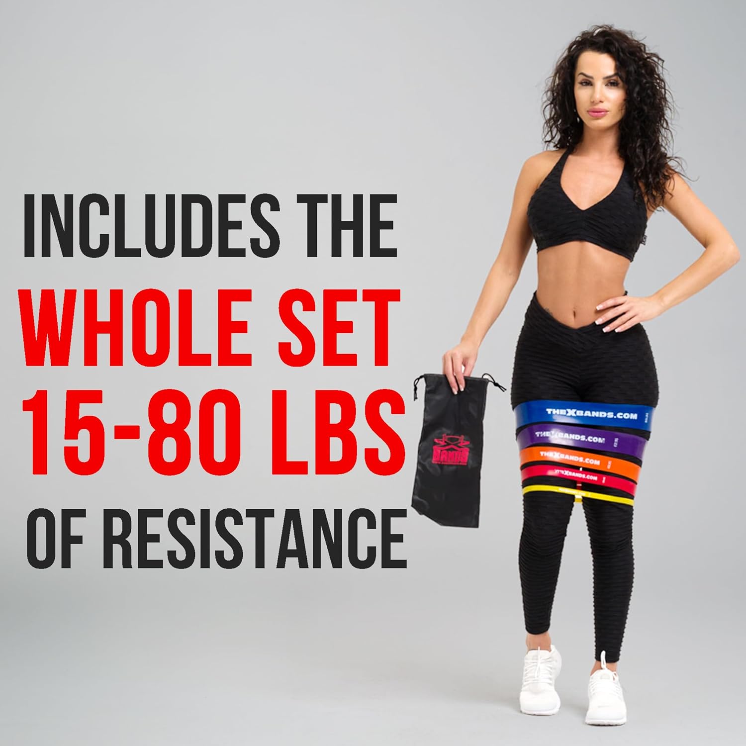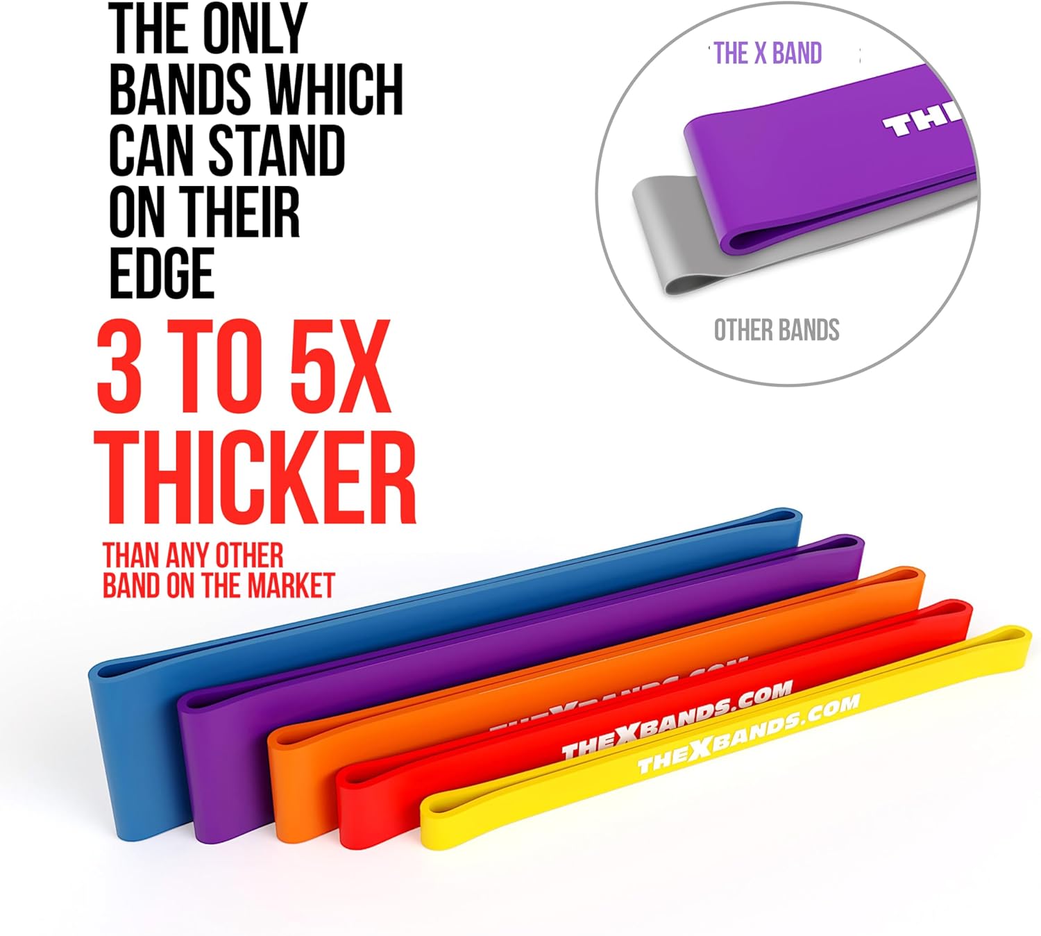 The x Bands Extra Thick Exercise Resistance Bands – Set of 2 or 5 Loop Booty Bands with Guide – Fitness Workout 15 to 80 lb – Best for Stretching, Yoga, Legs Training, Physical Therapy