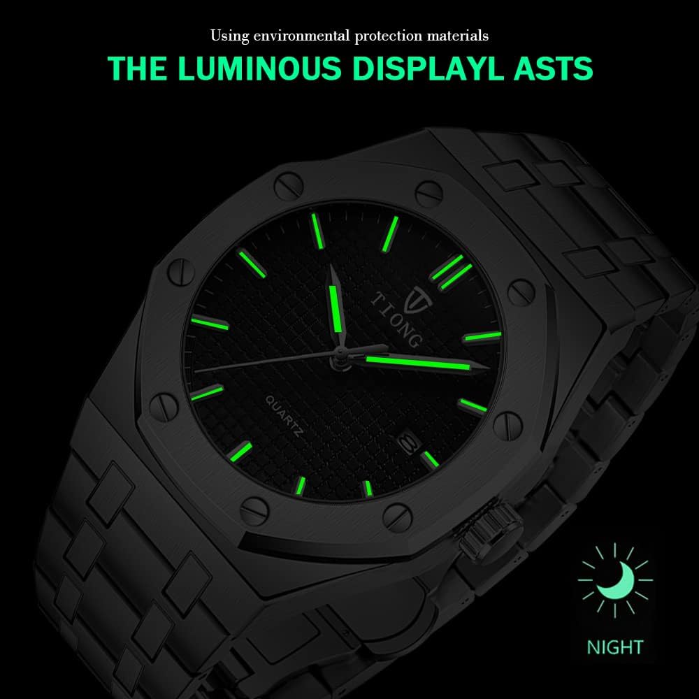 Tiong Mens Watches Chronograph Stainless Steel Waterproof Date Analog Quartz Watch Business Casual Fashion Wrist Watches for Men