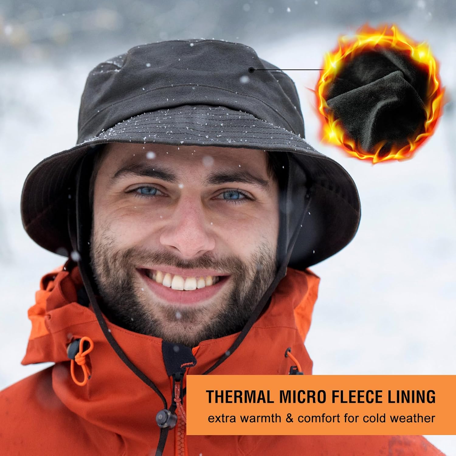 TOP-EX L/XL/XXL Waterproof Golf Bucket Rain Hat – Faux Leather Winter Fleece Hat with Ear Flaps for Cold Weather Unisex