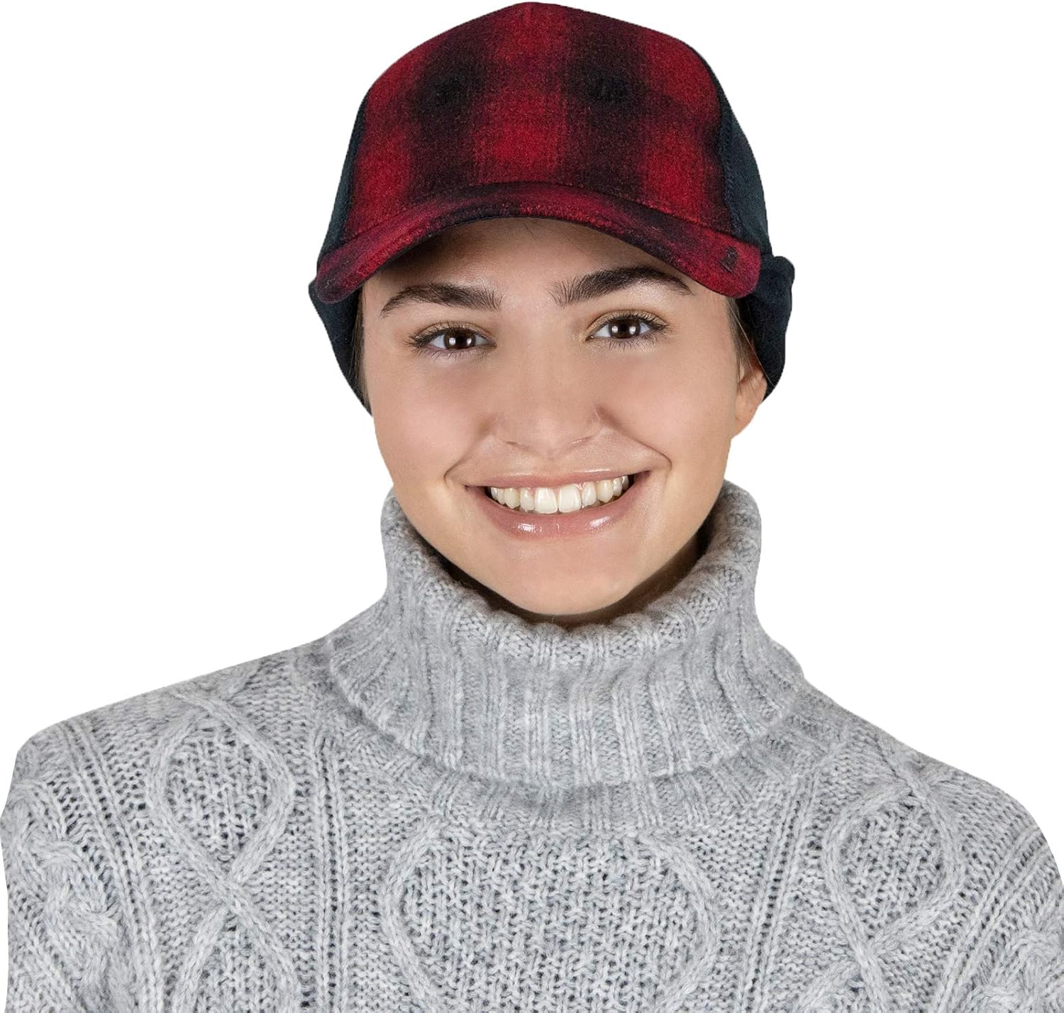 women's winter hat has a drop down fleece for full ear protection. Women's trucker hat plaid patternwomen's winter hat has a drop down fleece for full ear protection. Women's trucker hat plaid pattern