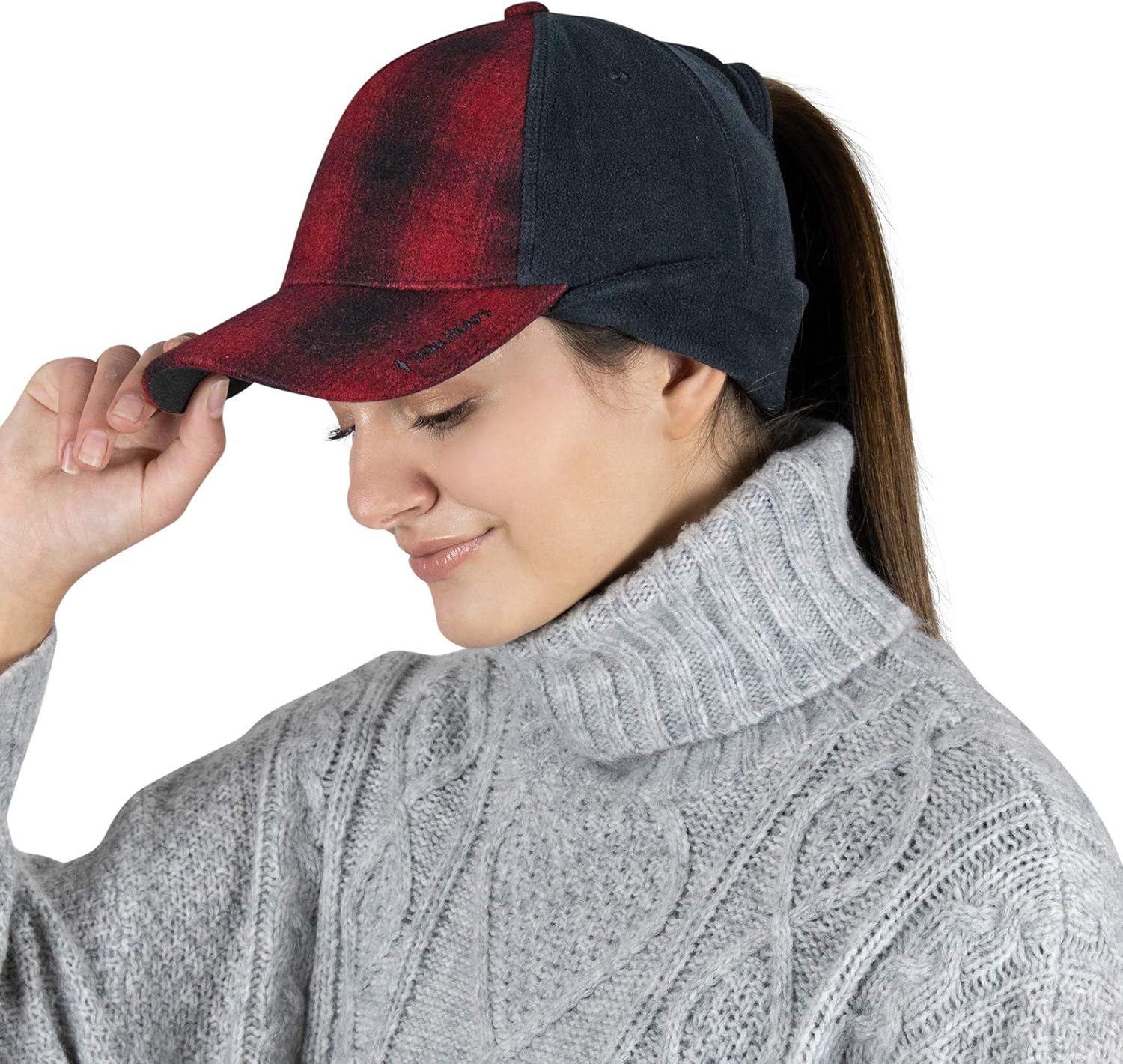 TrailHeads Women’s Winter Ponytail Hat | Trucker Hat with Drop Down Ear Warmers