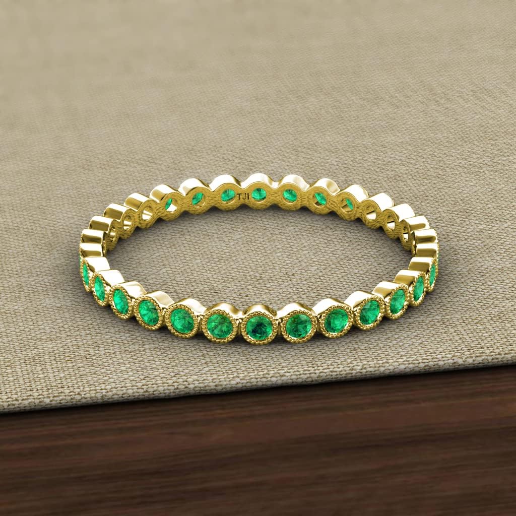 TriJewels Created Emerald Bezel Set Milgrain women Eternity Ring Stackable 5/8 ctw 14K Gold