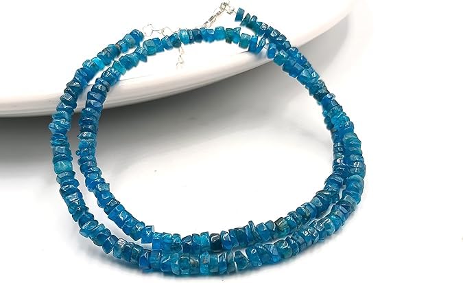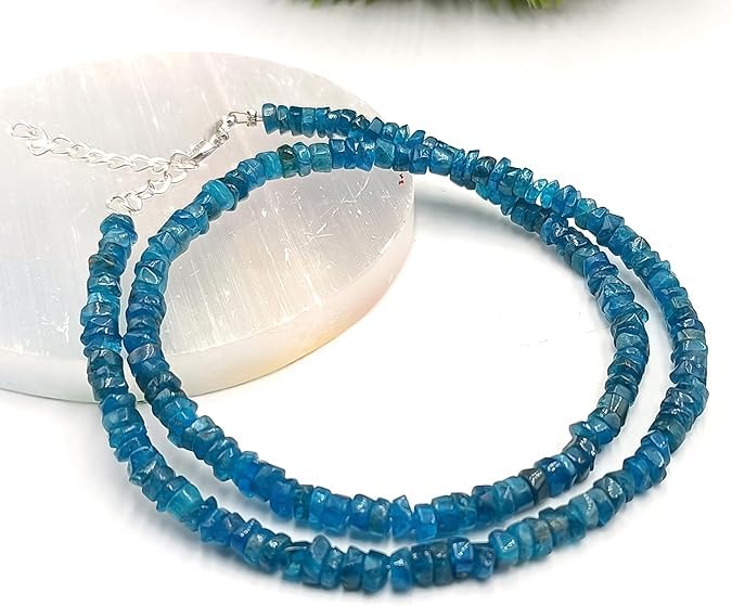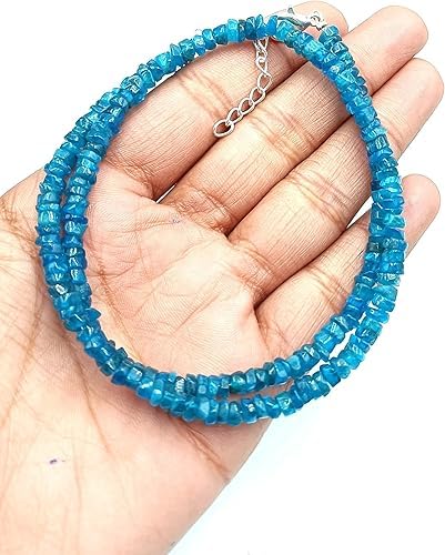 Elevate your jewelry collection with this stunning Handmade Blue Apatite Heishi Disc Beaded Necklace, crafted from natural gemstone beads in a stylish wheel (tyre) shape. The vibrant blue hues of Apatite bring an oceanic charm to your neckline, making this piece both eye-catching and elegant. Blue Apatite is known for its metaphysical properties, believed to enhance communication, clarity, and motivation. Whether you’re dressing up for a special occasion or adding flair to your everyday look,