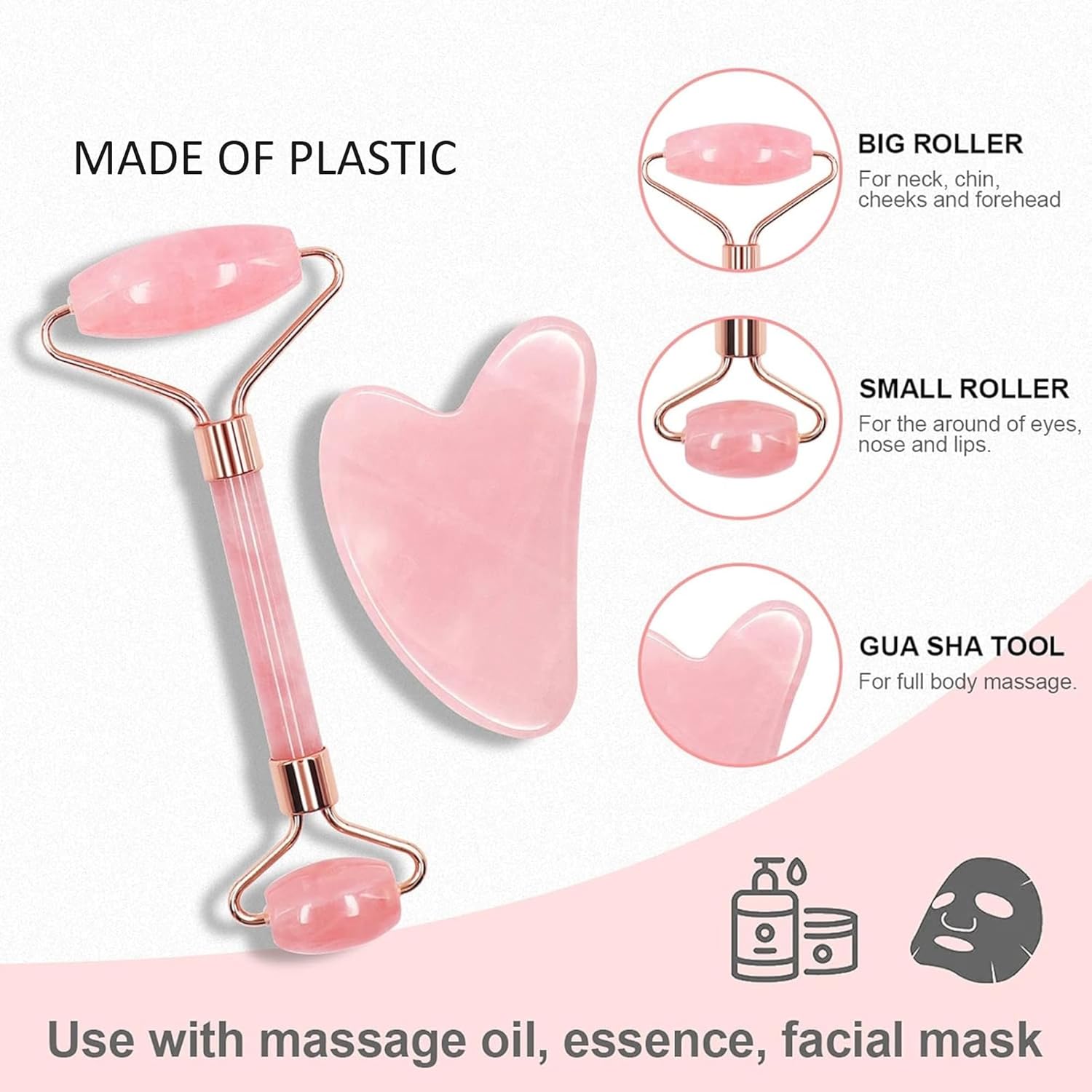 Jade Roller & Gua Sha Facial Tools: Enhance your skincare with our facial gua sha and jade roller, designed for face sculpting and reducing puffiness. Although the materials are not genuine jade, the lightweight construction offers ease of use. It is ideal for daily facial massages and for promoting skin elasticity. Note: Both are made of high-quality plastic.