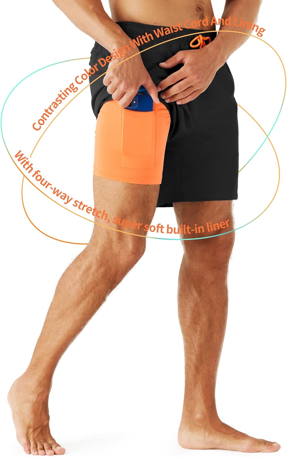 URBEST Men’s Swim Trunks with Compression Liner Quick Dry Beach Shorts with Pockets for Beach and Swimming