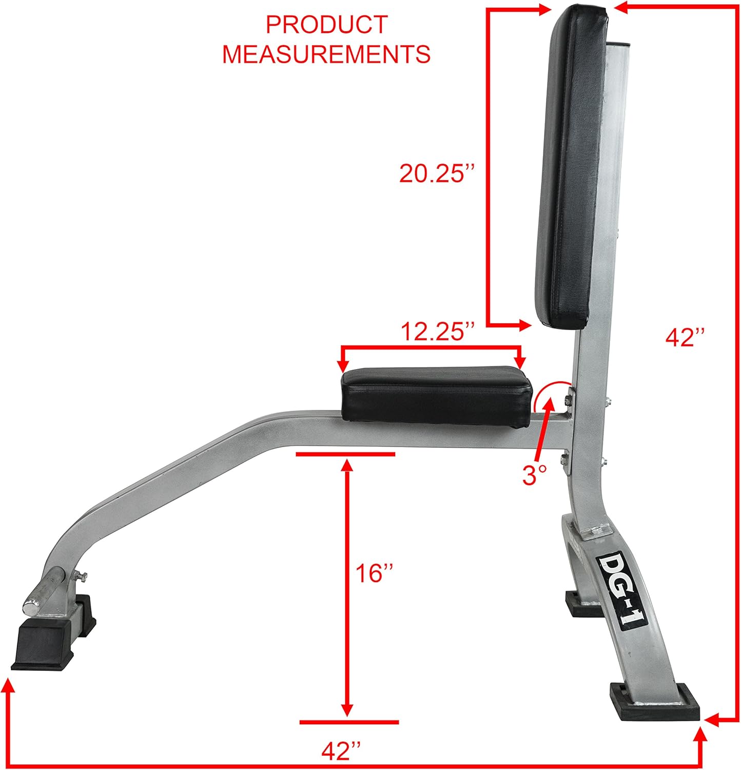 HIGH-DENSITY PADDING- Designed with high-density, dual layered padding to withstand intense stress and pressure during exercise. Back pad measures 19. 75 in. X 9. 5 in. X 2. 25 in. Seat pad measures 12 in. X 9. 25/6 in. X 2. 75 in.