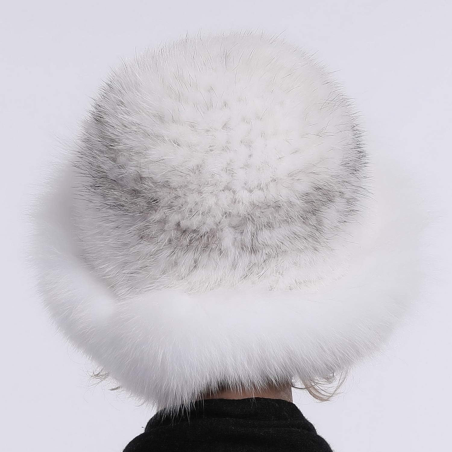 Womens Winter Knitted Real Mink Fur Hats with Fox Brim