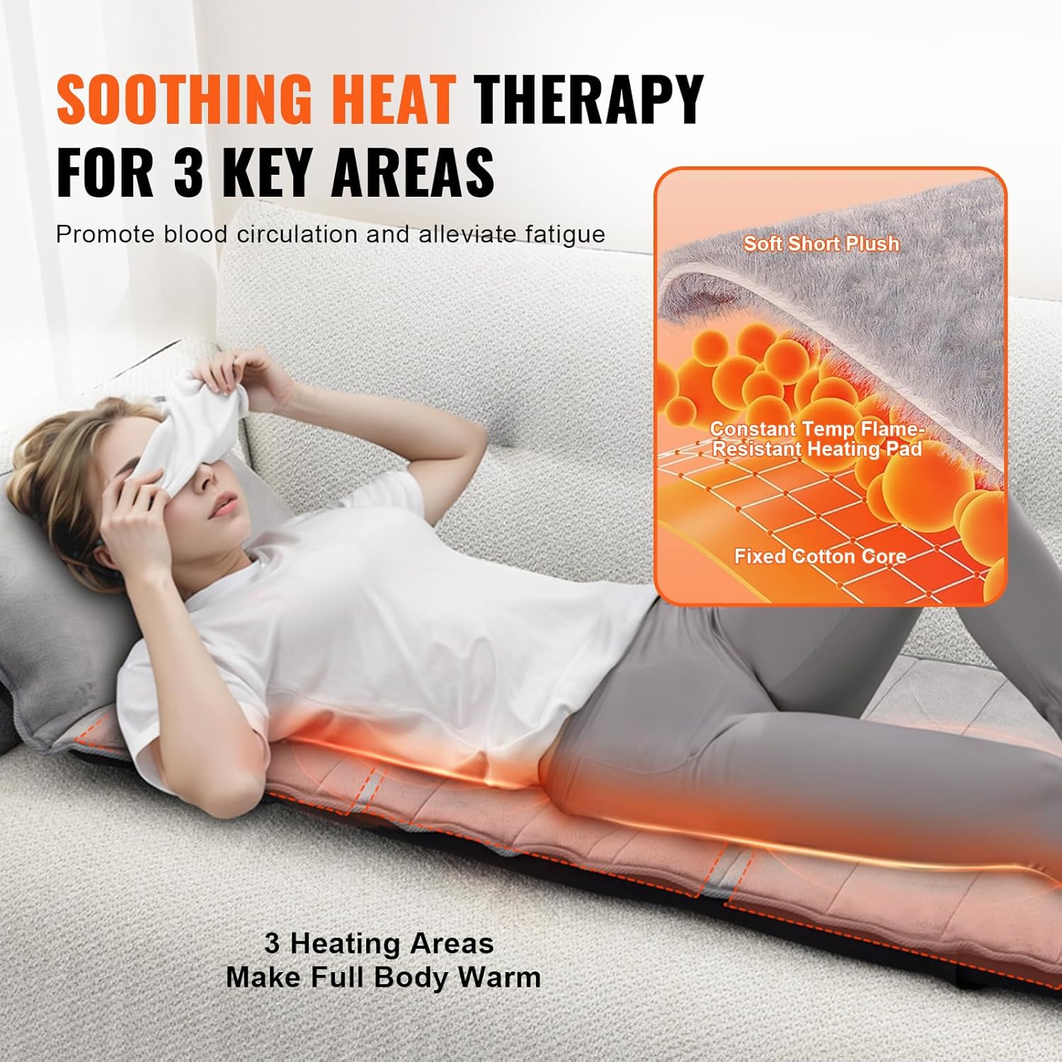 VEVOR Full-Body Massage Cushion with Heat, 10 Vibration Motor Massage Cushion Pad, Heating Vibrating Massage Mat & 5 Modes, 3 Intensities, 3 Heating Pads, Fatigue Relief Back Massager for Home Office