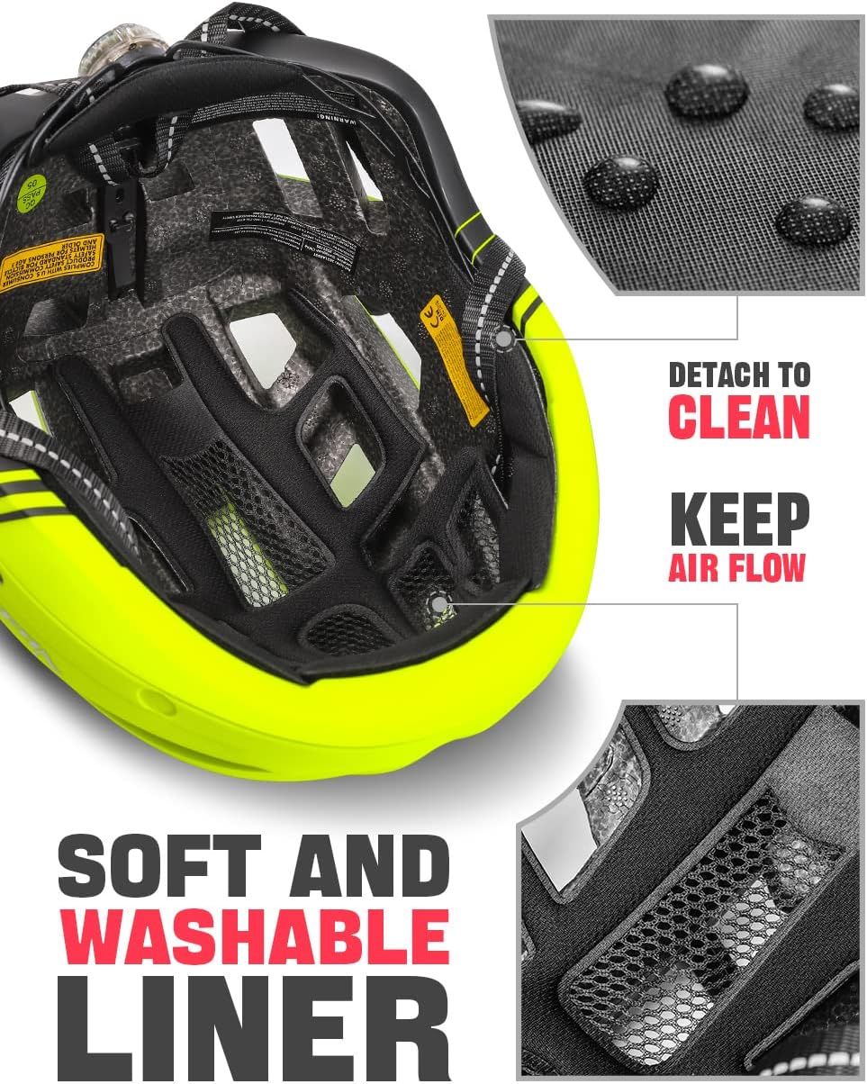 Bright Helmet Rear Light: Our bike helmet with light in the back, it has 3 flashing mode light- steady, slow flashing and fast flashing. It is necessary to equip taillights for night cycling, it will help riders behind you clearly recognize your direction and warning the car.