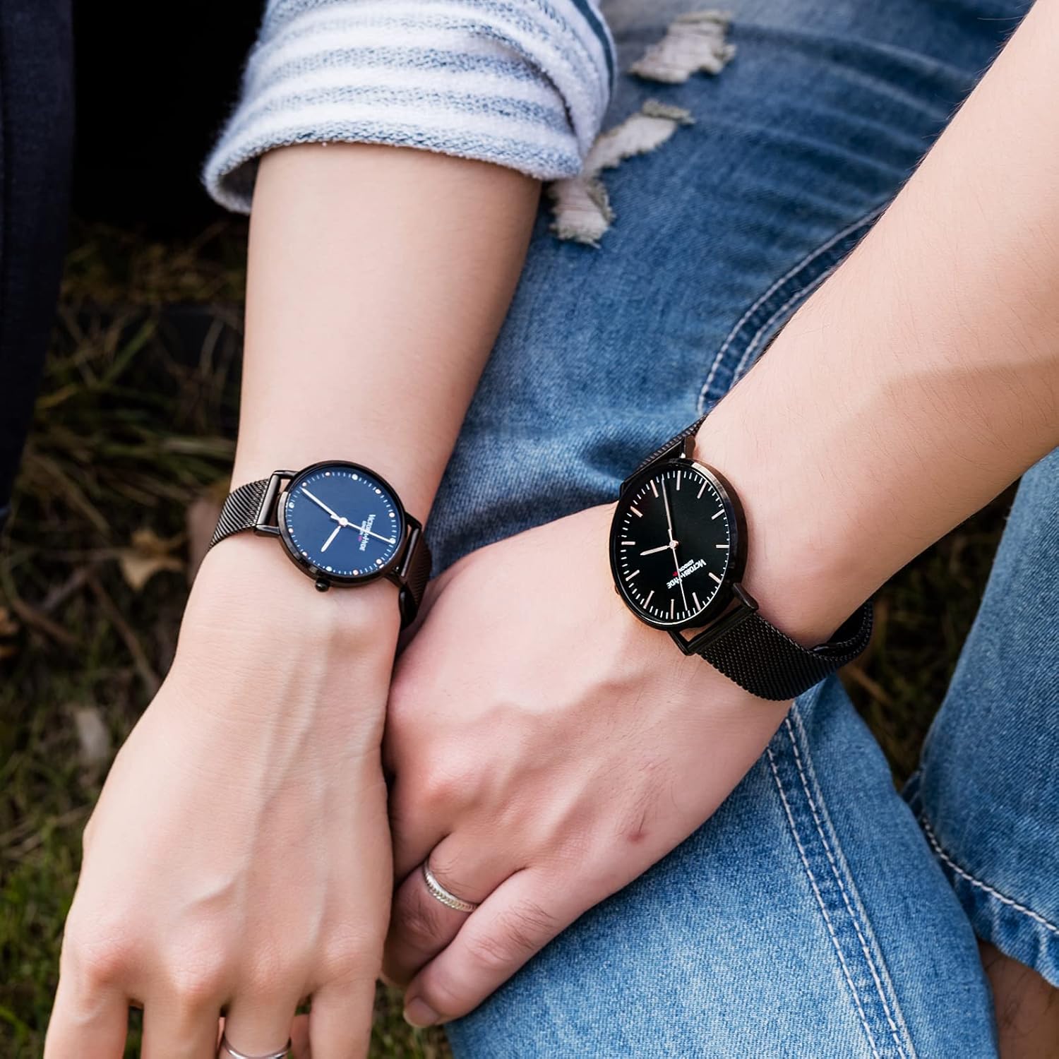 VICTORIA HYDE Couple Watches for Men Women Genuine Leather Strap Stainless Steel Mesh Band His and Hers Waterproof Quartz Wristwatch Gifts Set for Lovers
