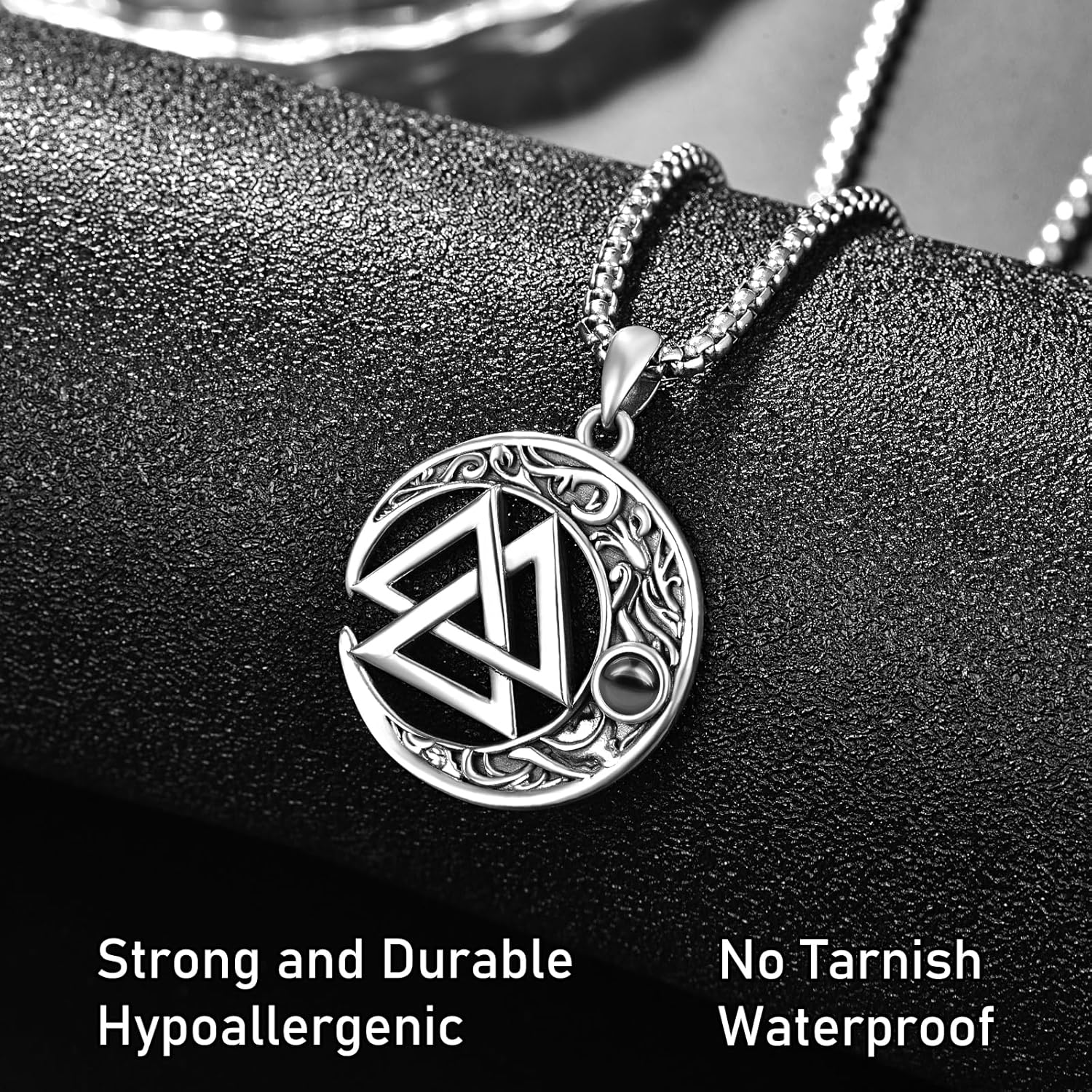 Viking Necklace 925 Sterling Silver Viking Rune Moon Pendant Necklace Nordic Amulet Necklace Jewellery Gift for Men Women