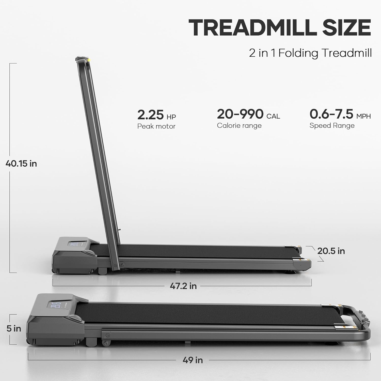 Walking Pad 2 in 1 Treadmills for Home 2.25HP Under Desk Treadmill Foldable Treadmill with Remote Control LCD Display Foldable Handrail 220LBS Weight Capacity for Walking Jogging Running