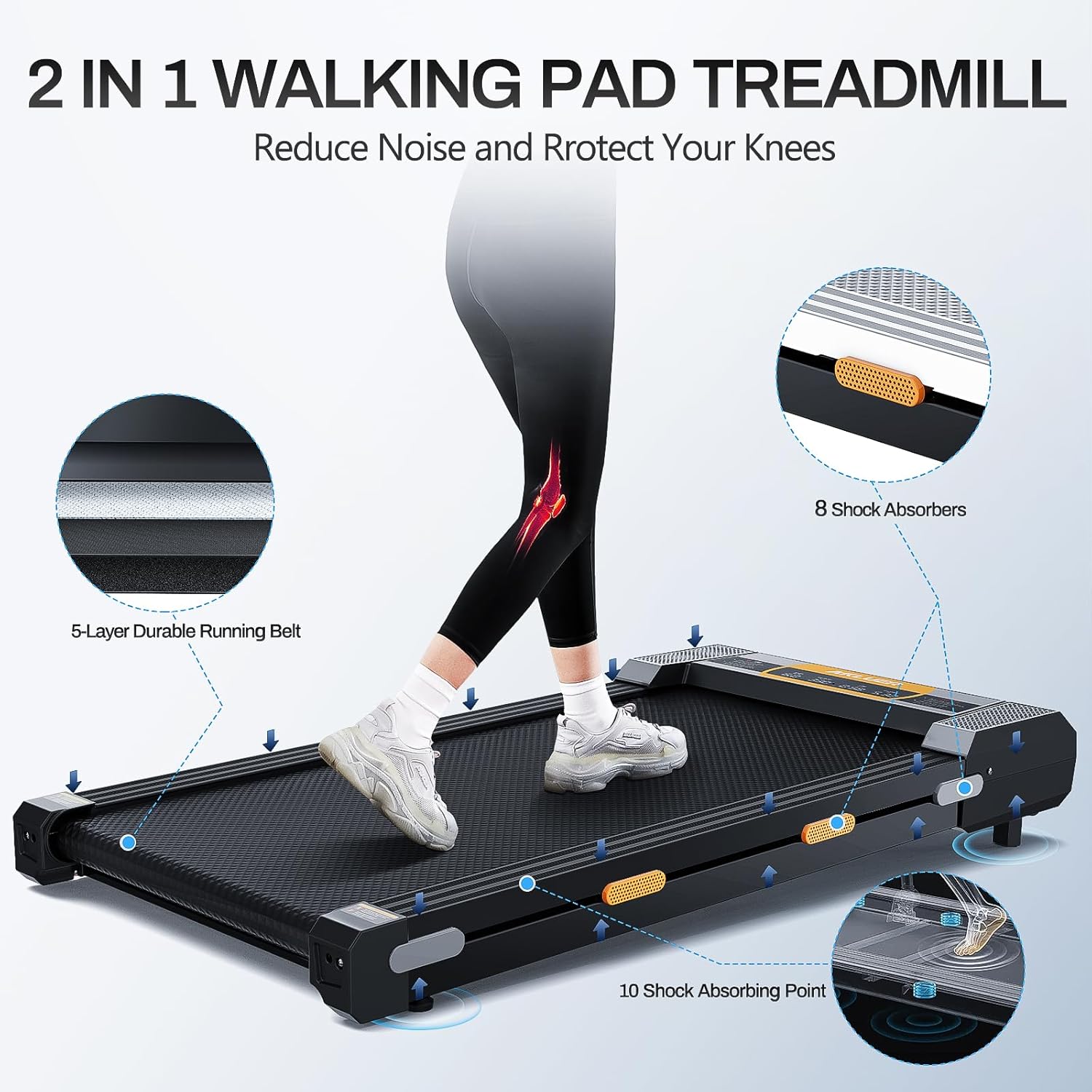 Walking Pad Treadmill with Incline Under Desk Treadmill, 2 in 1 Portable Compact Treadmill for Home with Remote Control, LCD Display, Small Walking Jogging Machine