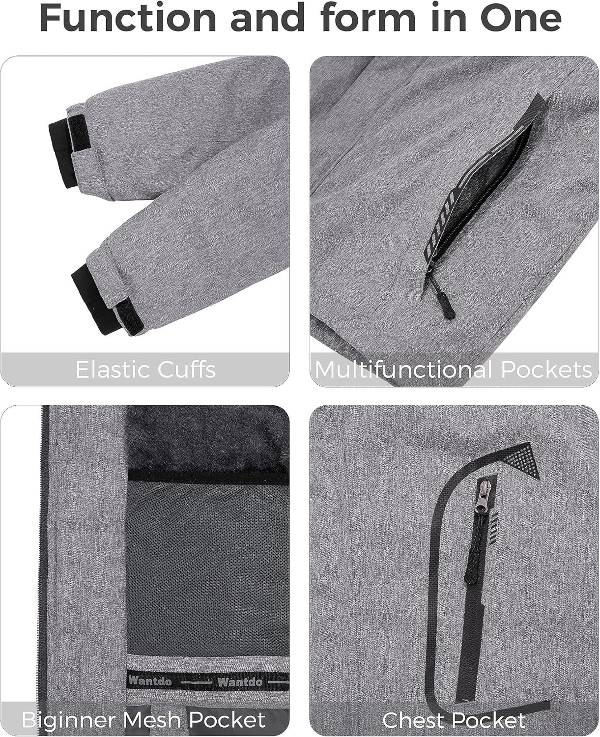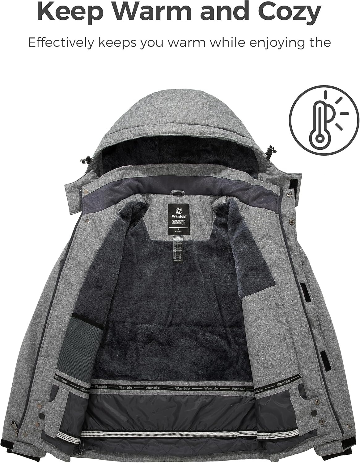 Wantdo Men’s Waterproof Ski Jacket Warm Winter Snow Coat Snowboarding Jacket Mountain Hooded Raincoat
