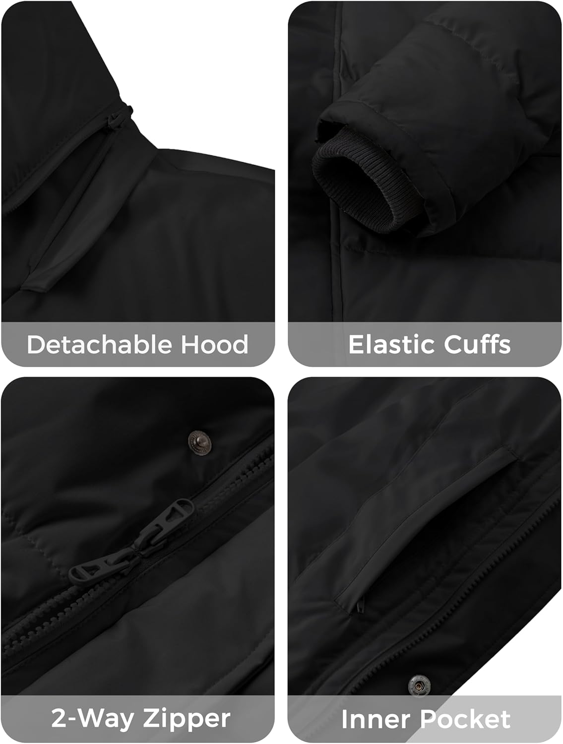 wantdo Men’s Winter Coat Warm Parka Jacket Waterproof Puffer Jacket with Removable Hood (Regular and Big Size)