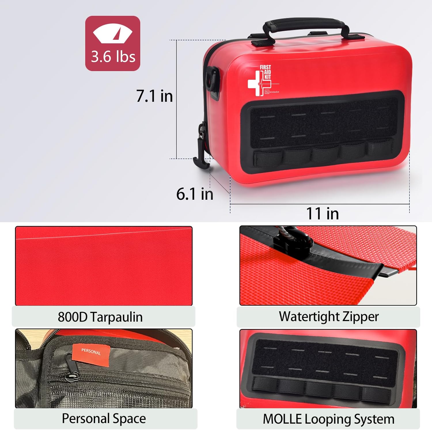 High – grade Waterproof Outdoor First Aid Kits: Our kit features an excellent waterproof design with a superior watertight zip. It can be fully immersed in water for a long time without getting wet inside, making it perfect for use on boats and in harsh weather conditions such as hurricanes.