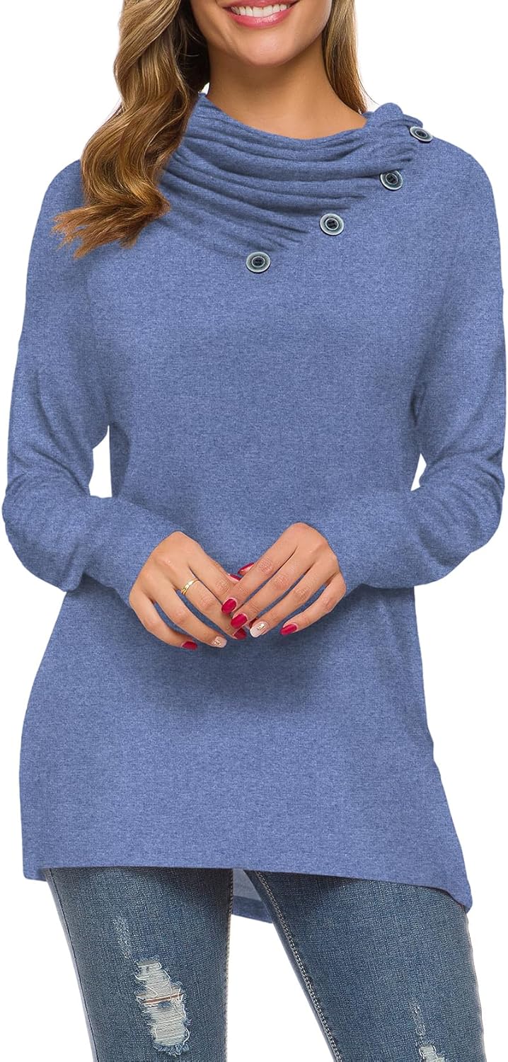 WEACZZY Women’s Long Sleeve Shirts Button Cowl Neck Casual Loose Tunic Tops Blouse Dressy Fall Fashion 2024