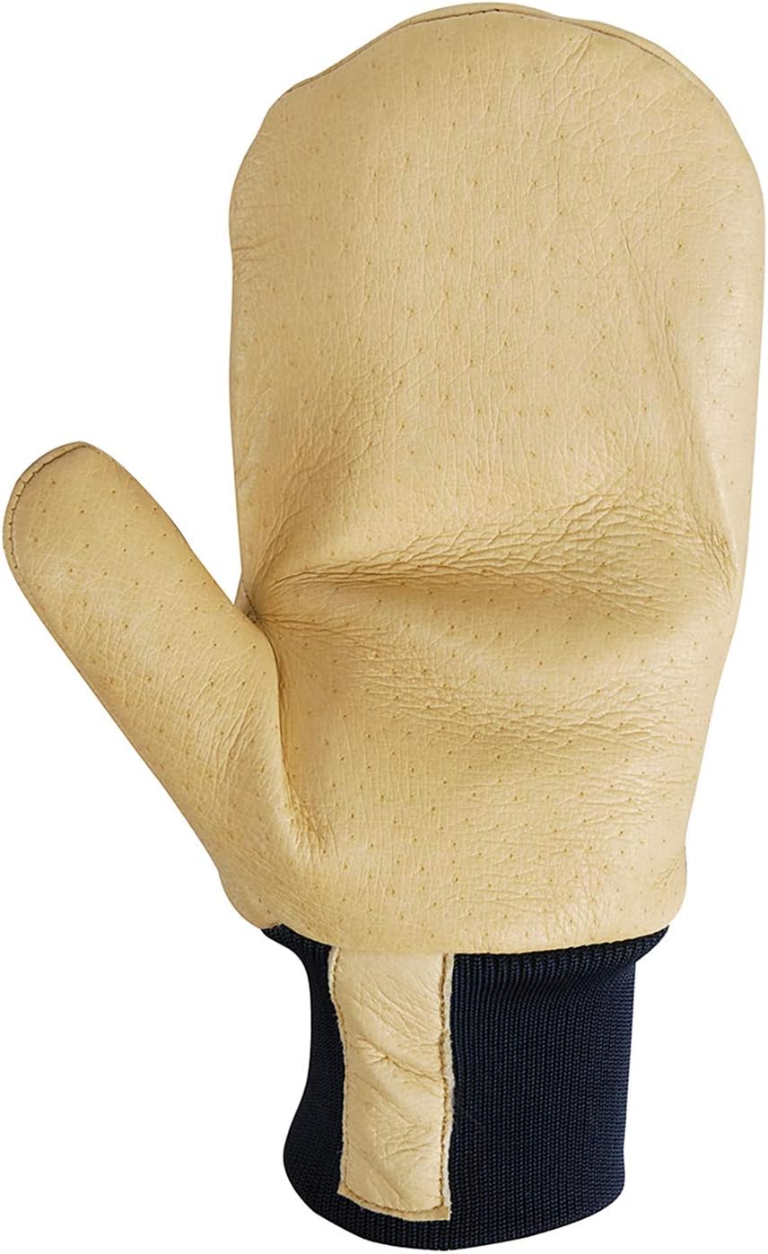 Men’s heavy duty leather winter work mittens keep your hands warm and protected from the elements while you work. Ideal for: cold weather, shoveling snow, snow blowing, and more. 100-Gram 3M Thinsulate insulation for warmth, fleece-lined for comfort. Ideal insulation for very cold environments. Extra long knit wrist keeps wrists warm. Elastic stretch of knit wrist keeps snow and debris out of gloves. Glove features a fully wrapped glove liner sewn into the mitten construction for improved dexterity. Constructed of heavy duty grain leather with a fabric back.