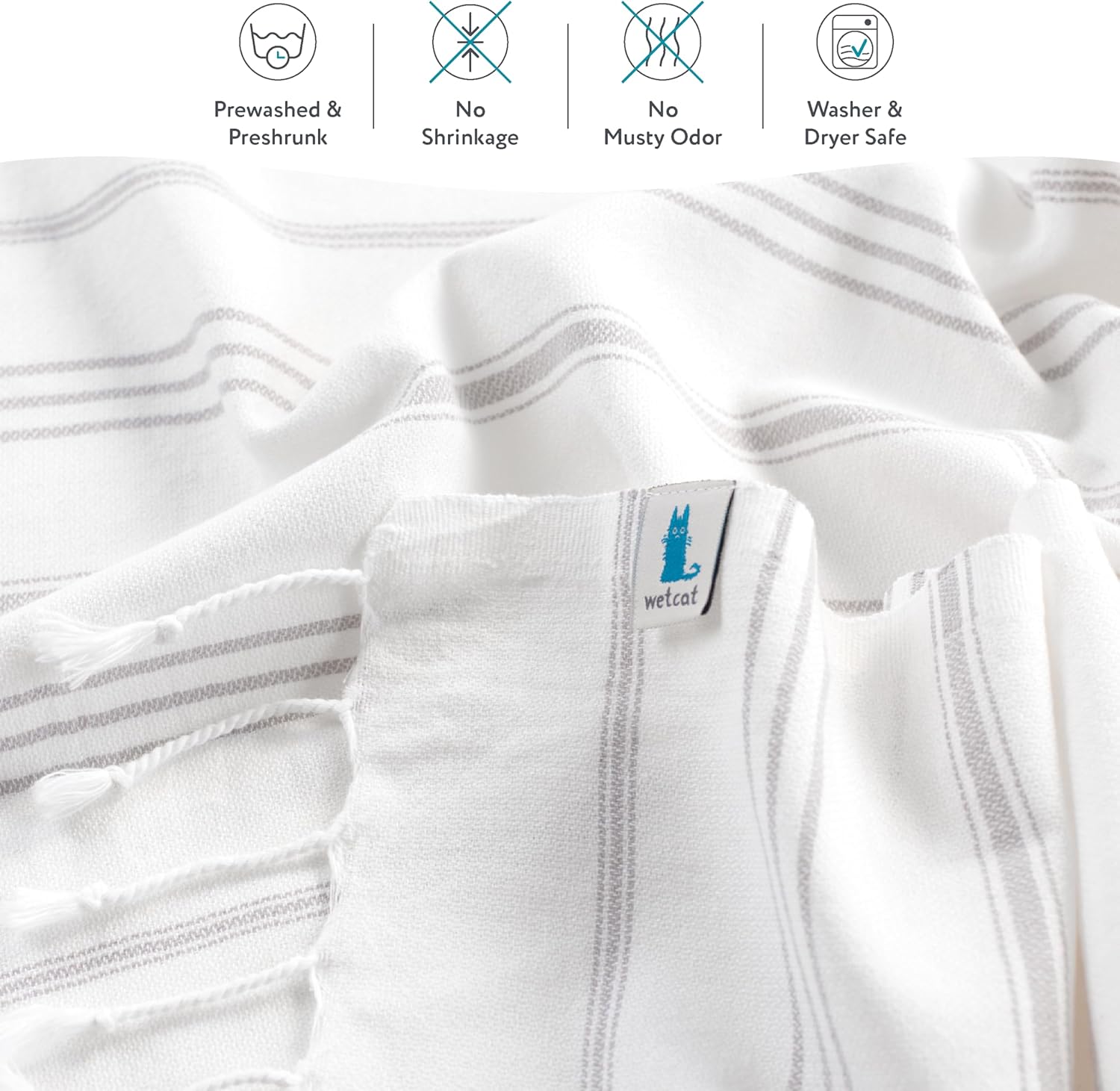 QUALITY YOU CAN FEEL: Who wants a stiff, scratchy Turkish beach towels? At Wetcat, our fabric is prewashed for an unbelievably soft texture. Made in Turkey with OEKO-TEX certified natural dyed yarn, our decorative Turkish towels are safe for you and for the environment.