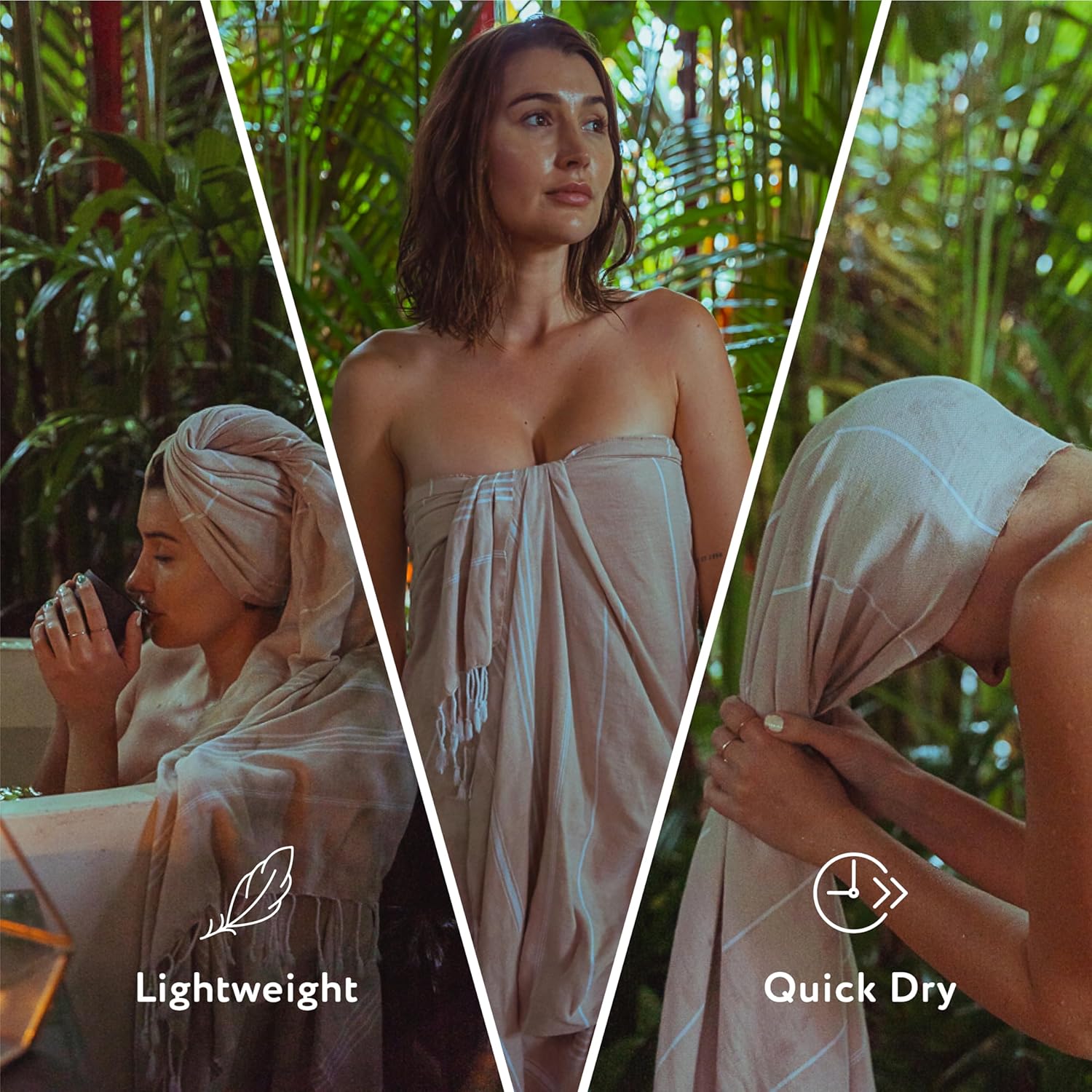 GREAT ON-THE-GO: Thinner than terrycloth but just as absorbent, our Turkish Towel is a must-have after your shower. Super-convenient to pack and carry, it’s non-bulky for easy travel. Compact and lightweight, it folds down to maximize space in your luggage or closet.