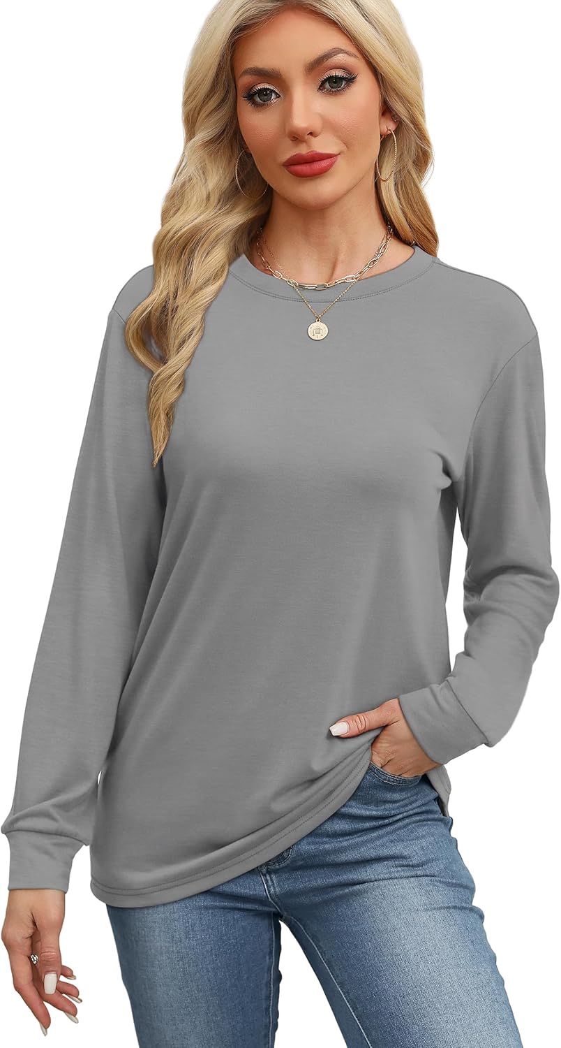 WIHOLL Womens Long Sleeve Shirts Loose Fits Fall Outfits Basic Casual Tunic Tops Crewneck Clothes