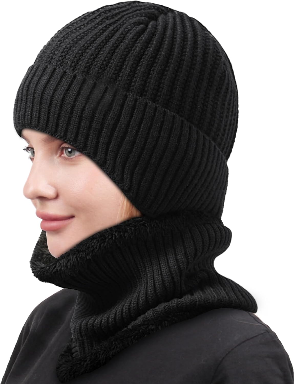 Winter Beanie Hat Scarf for Men Women, Warm Fleece Knit Winter Hats Neck Scarf Set Winter Gifts for Unisex Adult
