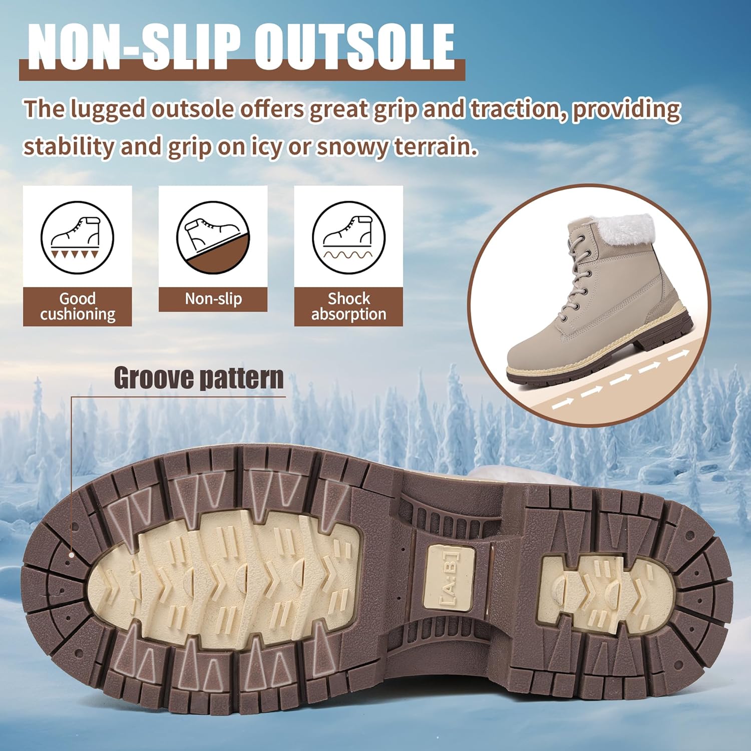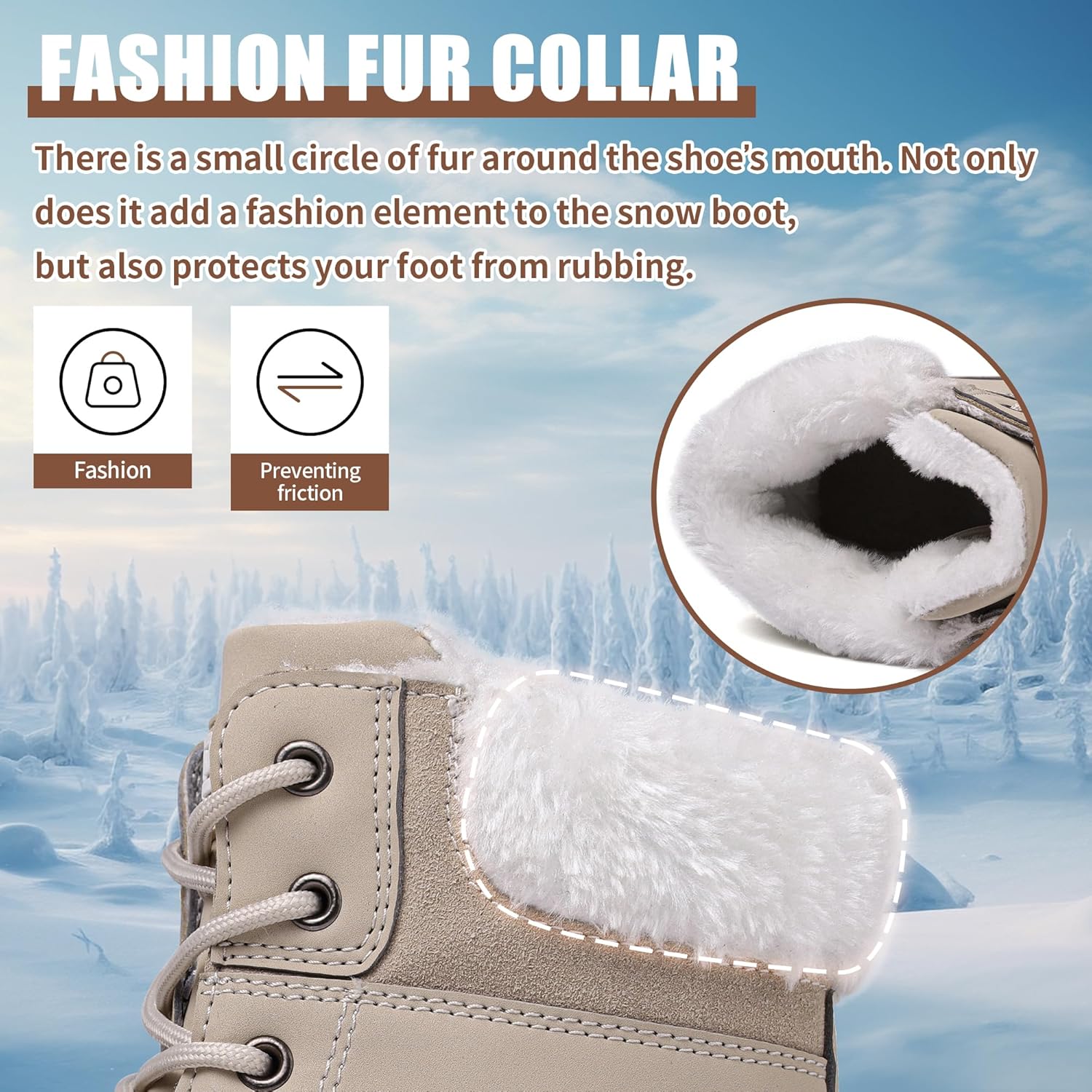 Winter Boots for Women Snow Boots Waterproof Fur Lined Warm Hiking Boots Ladies Lace Up Walking Boots Anti-Slip Lightweight Outdoor Ankle Boots