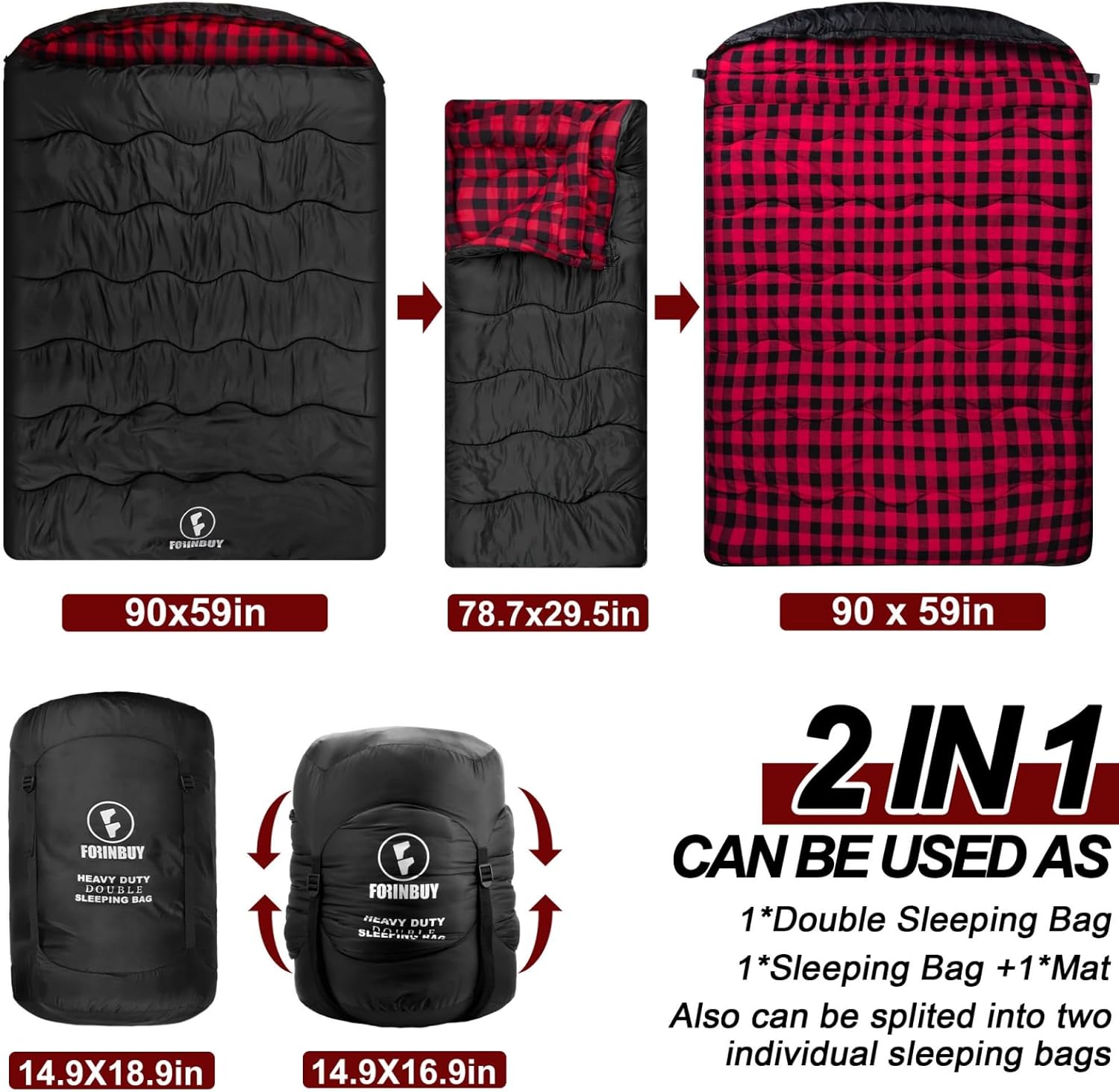 2 IN1 SLEEPING BAG: There are zippers on both sides of the sleeping bag for free entry and exit, which will not disturb another person . The double flannel sleeping bag can be detachable via zippers into two single sleeping bags or can also be fully unzipped and laid flat, turning the sleeping bag into a large blanket or a pad. Multifunctional design gives you more options for different occasions, so that you can better enjoy the outdoor life