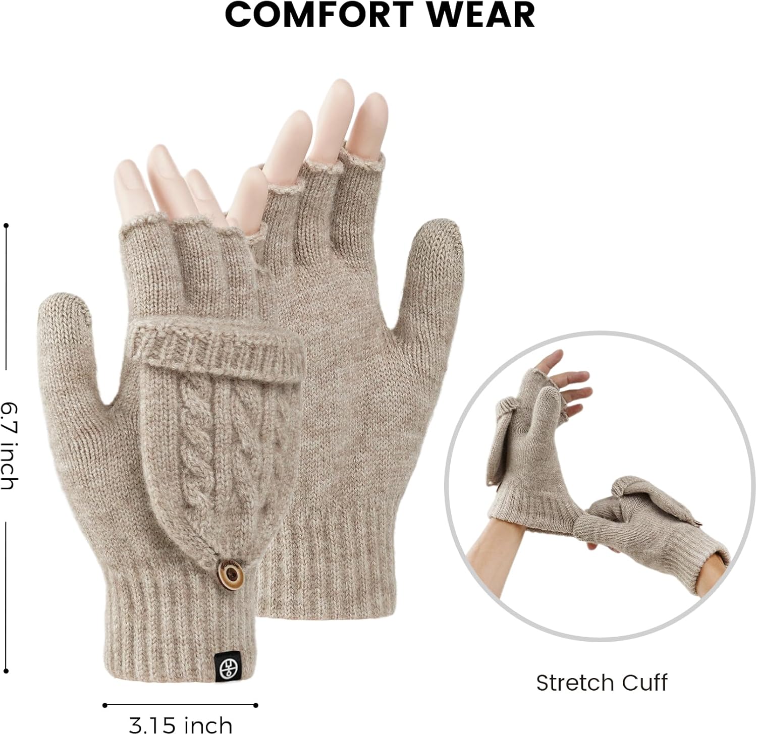Material Comfort and Warmth: Crafted from a blend of 52% acrylic, 28% nylon, and 20% polyester, these winter gloves boast high strength and wear resistance, ensuring durability. The material offers excellent elasticity and recovery, enhancing the fit and making them easy to clean and maintain without worrying about shrinkage or deformation. They dry quickly, providing convenience for daily use.