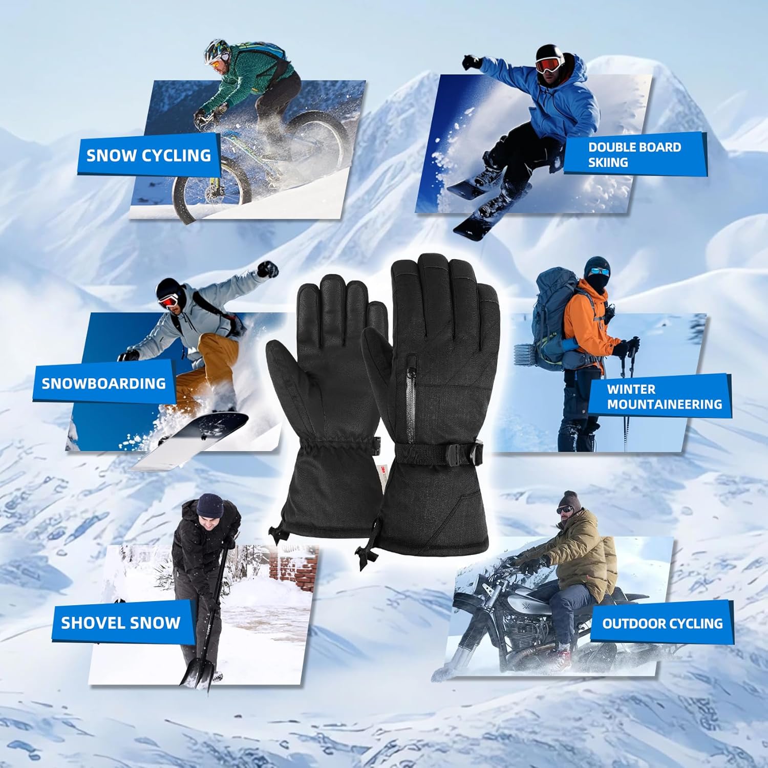 Winter Gloves for Men and Women, 3M Thinsulate Waterproof Snowboard Gloves, Touchscreen Snowmobile Gloves for Cold Weather