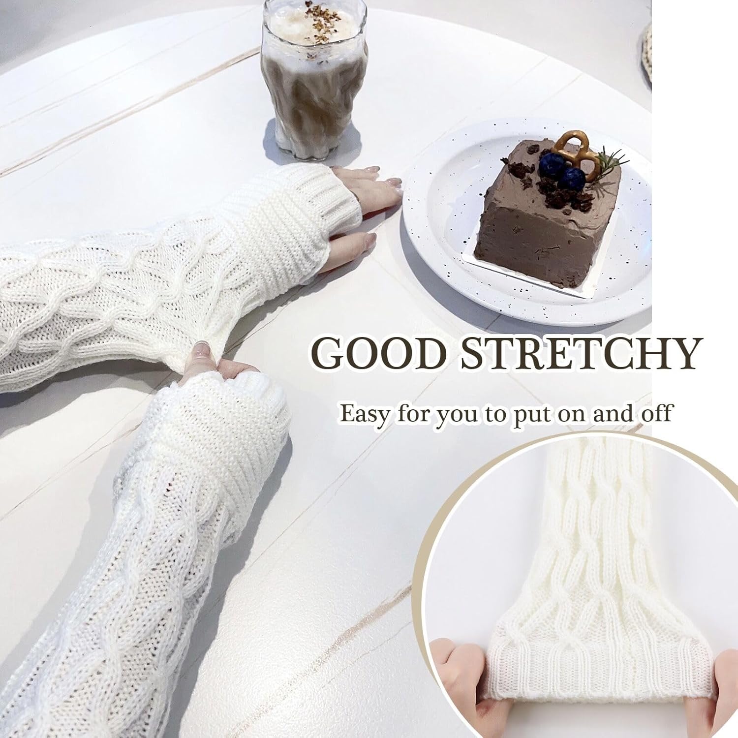 Winter Women Arm Warmers Long Fingerless Gloves for Women Mittens Knit Wrist Warmers with Thumb Hole Warm Sleeves