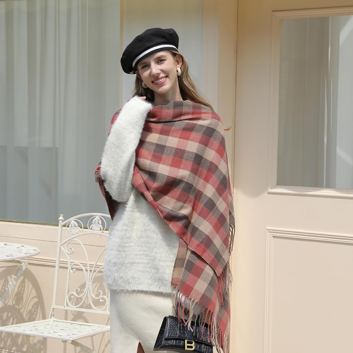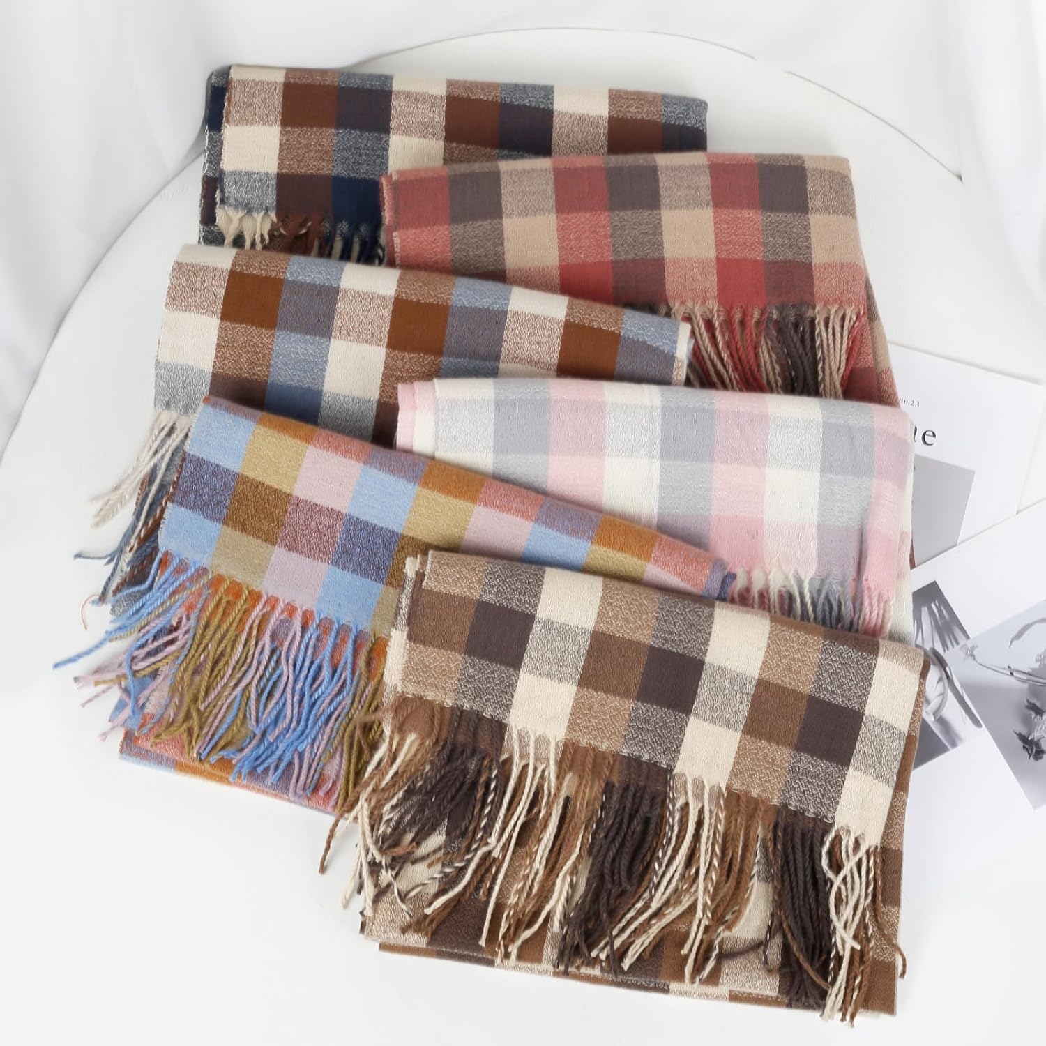 Women Scarf Fashion Long Plaid Shawls Wraps Big Grid Winter Warm Lattice Large Scarves Gifts Cold Weather Accessories