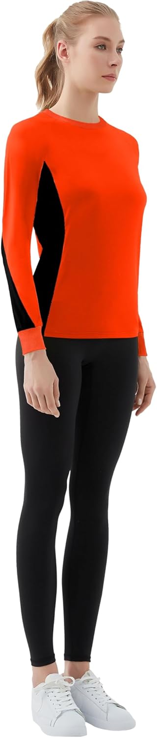 Women’s 2-Tone Side Blocked Long Sleeve Crew Neck Slim Fit Active Stretch Shirt