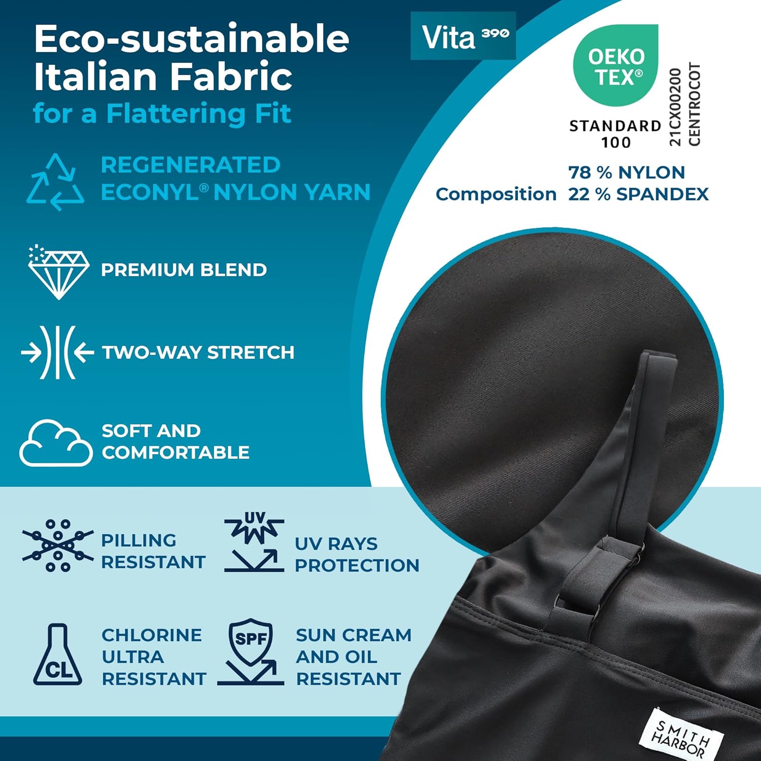 Elevate your swimwear game with this sleek and stylish square-neck one-piece swimsuit. Crafted from eco-friendly premium Carvico fabric, this swimsuit offers a comfortable and flattering fit that hugs your curves while supporting sustainable fashion. The adjustable straps provide a customized, secure fit, and the full coverage design ensures you feel confident and supported, whether you’re lounging by the pool or enjoying a day at the beach. Featuring elegant ruching detail and quality stitching, this swimsuit is fully lined for additional comfort and durability. Perfect for resort wear, this one-piece is a timeless addition to your summer wardrobe, combining comfort and style for active and sophisticated sun-soaked days. Slip it on and embrace the best of poolside and beachside fashion with effortless style.