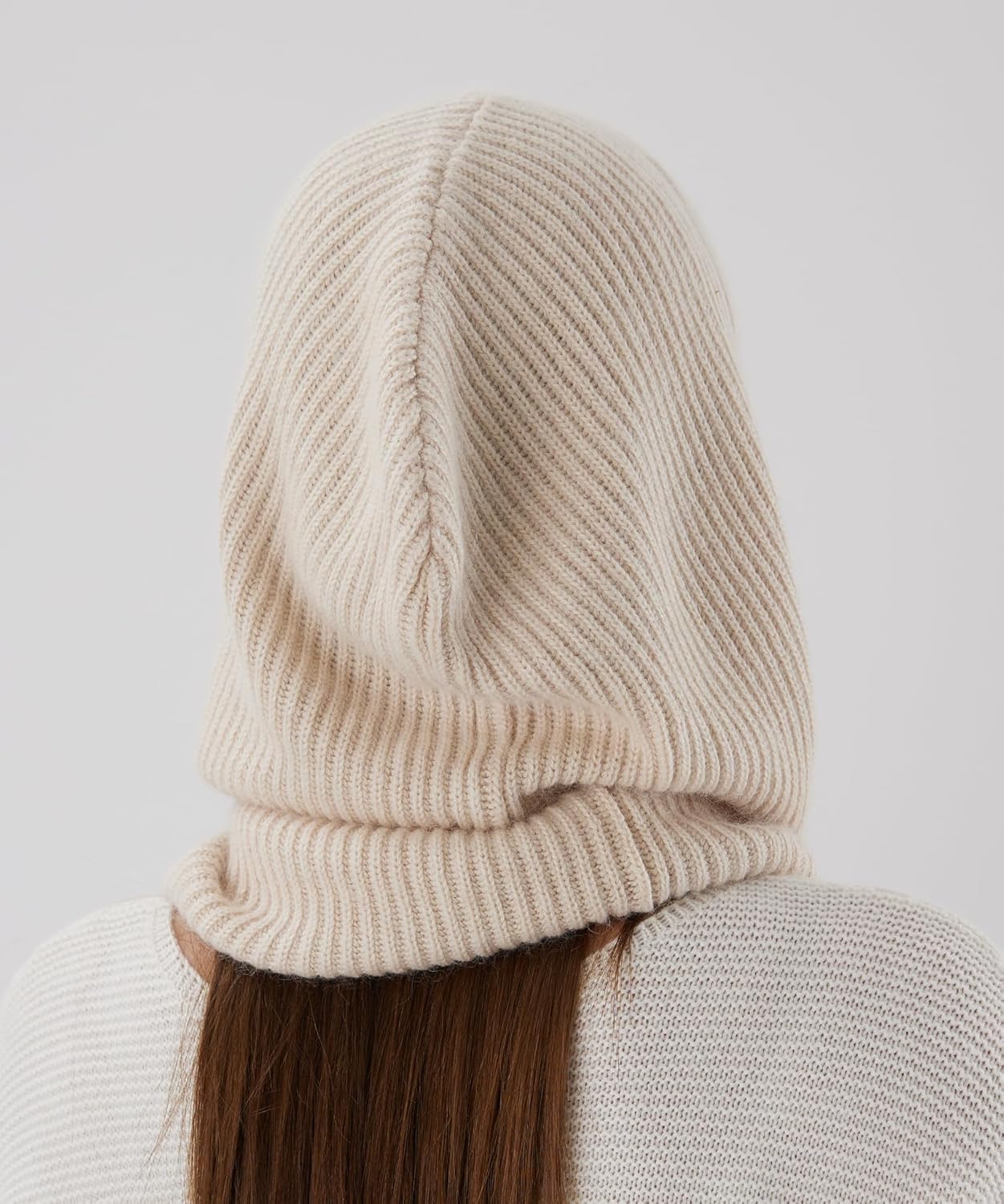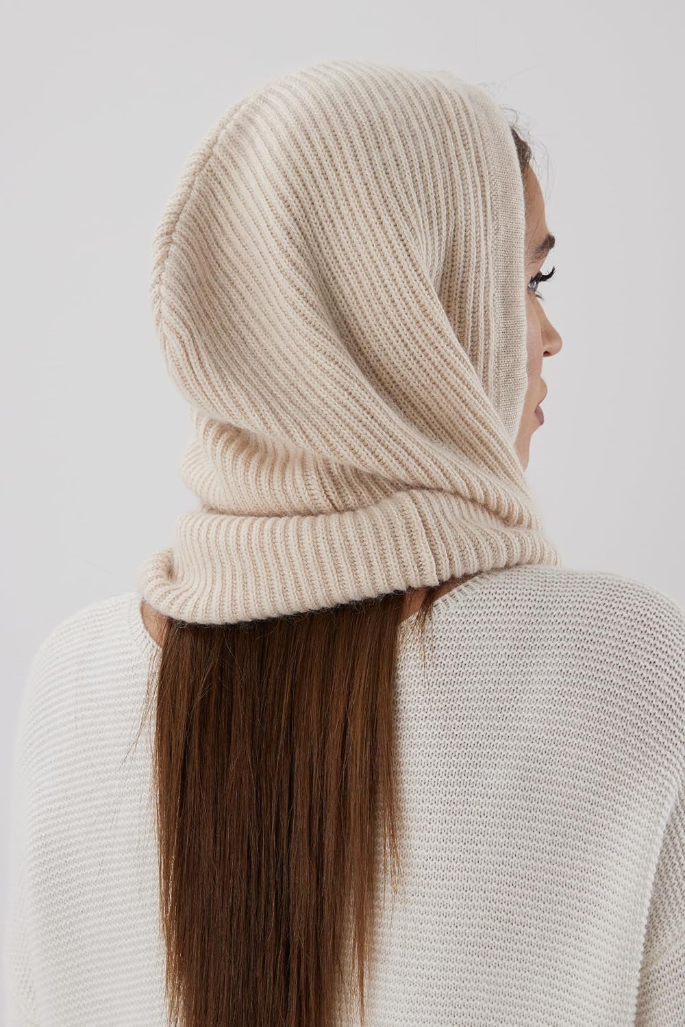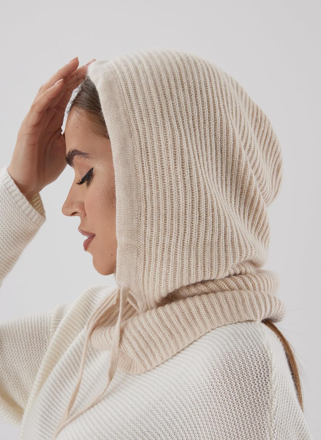 Women’s cream cashmere silk hooded hat in Headscarf style, a soft and warm head covering designed for elegant, modest winter fashion