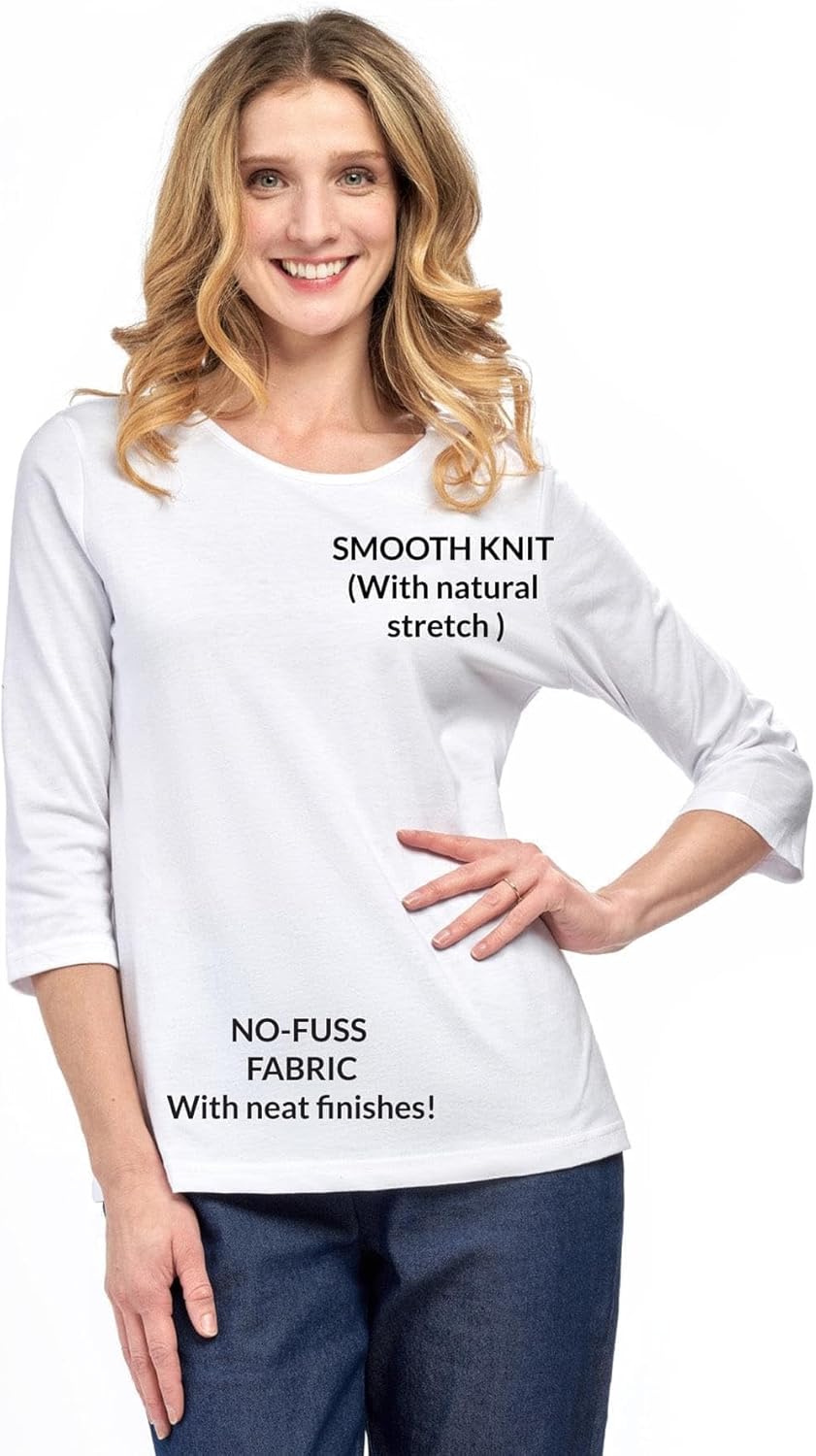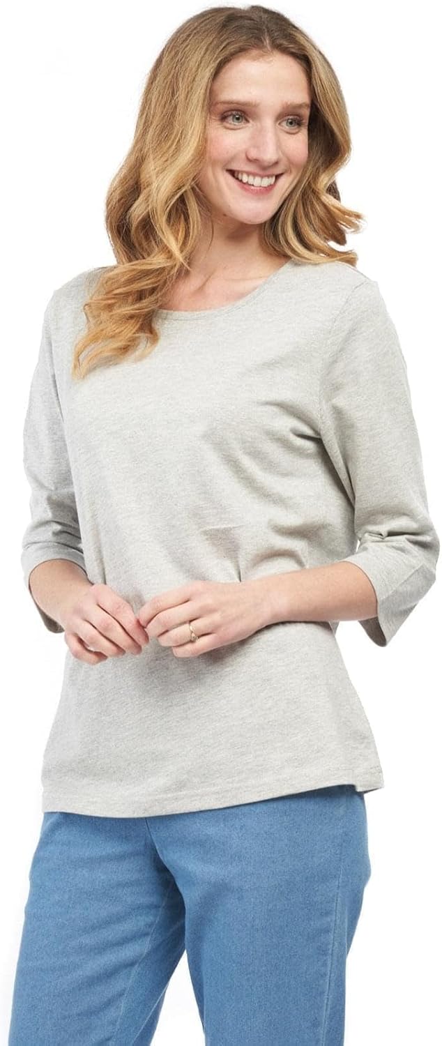 Women’s Classic Comfort Fit 3/4 Sleeve Length Crew Neck Jersey Knit T-Shirt