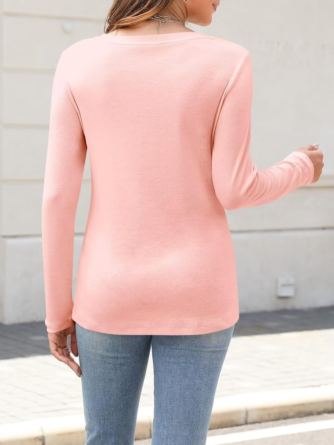 TICTICMISS Women’s Long Sleeve Tops V Neck Shirts Casual Basic Tee Shirts v neck t shirts henley long sleeve womens button down shirts long sleeve
