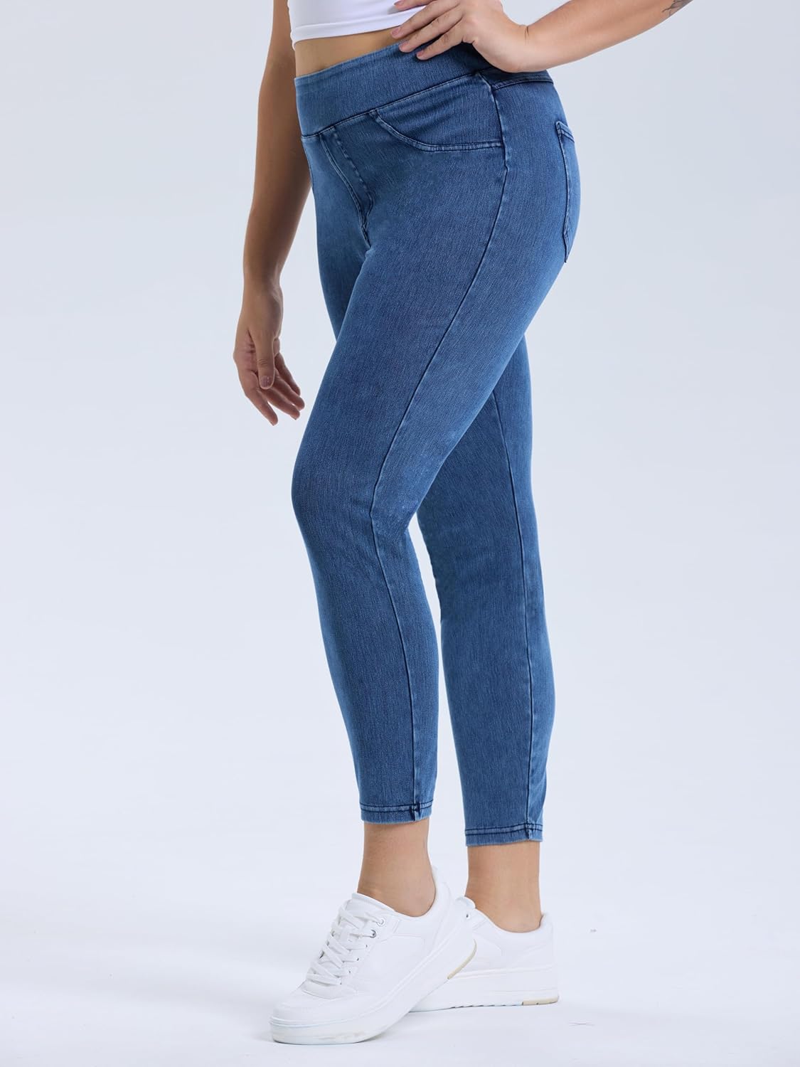 Women’s Plus Size High Waist Stretch Jeans Casual Denim Leggings Real Back Pockets Skinny Pull On Pants 1X-4X