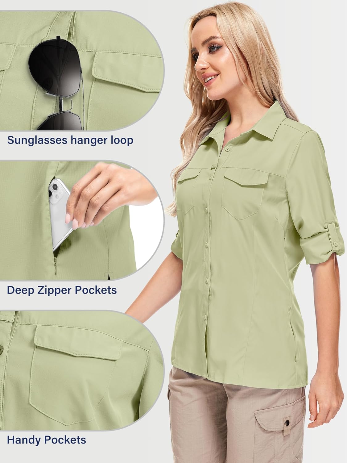 Women’s UPF 50+ UV Sun Protection safari Shirts Long Sleeve Fishing Hiking