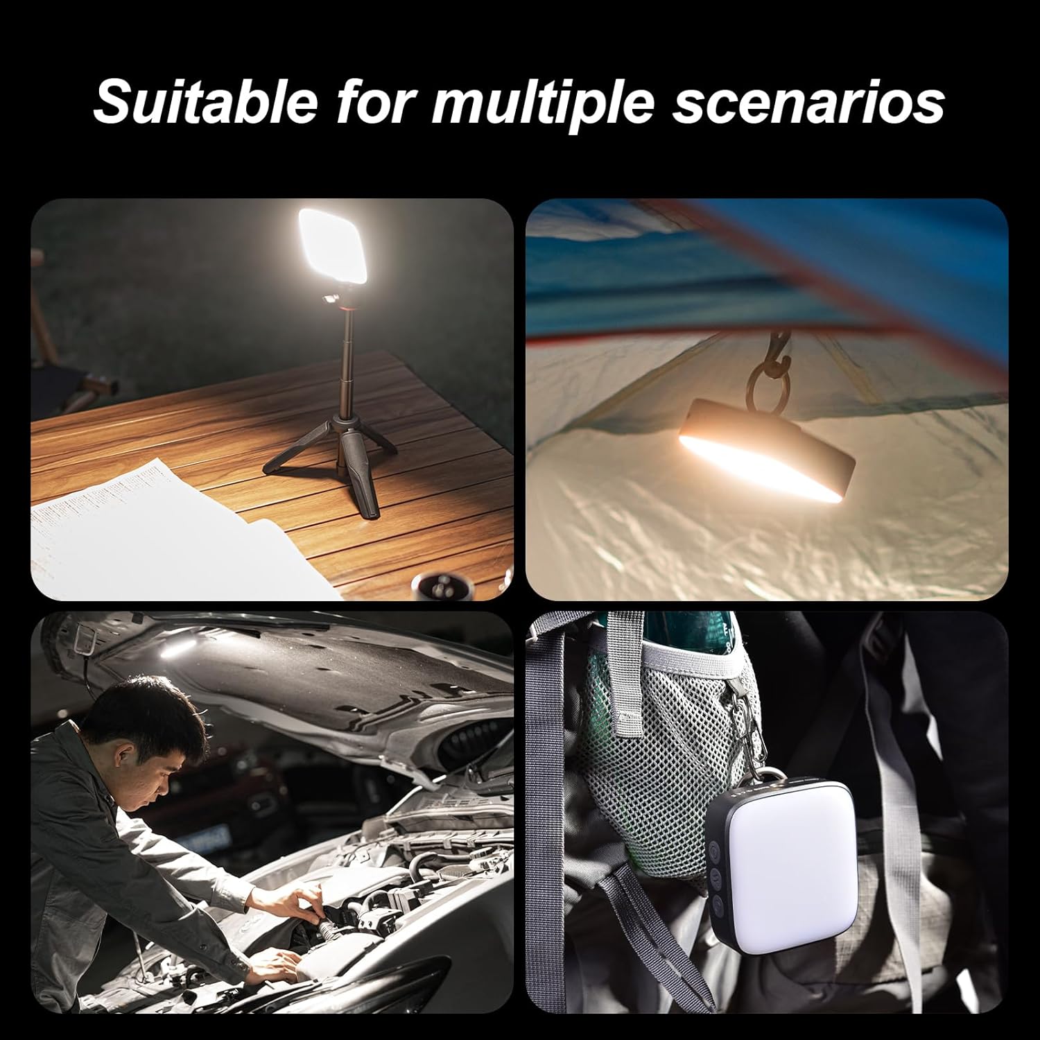 Magnetic Base & Hook Design: This PortableTent Lantern a hook design and hooks, allowing you to enjoy plenty of light in your tent.180 degree rotatable metal stand, you can choose the most suitable lighting angle. In addition to the hook, we also added a built-in STRONG MAGNET, you can attach it to metal surfaces, This portable camping lantern water-resistant rating is IP64, works well in rains, but do not sink it into the water