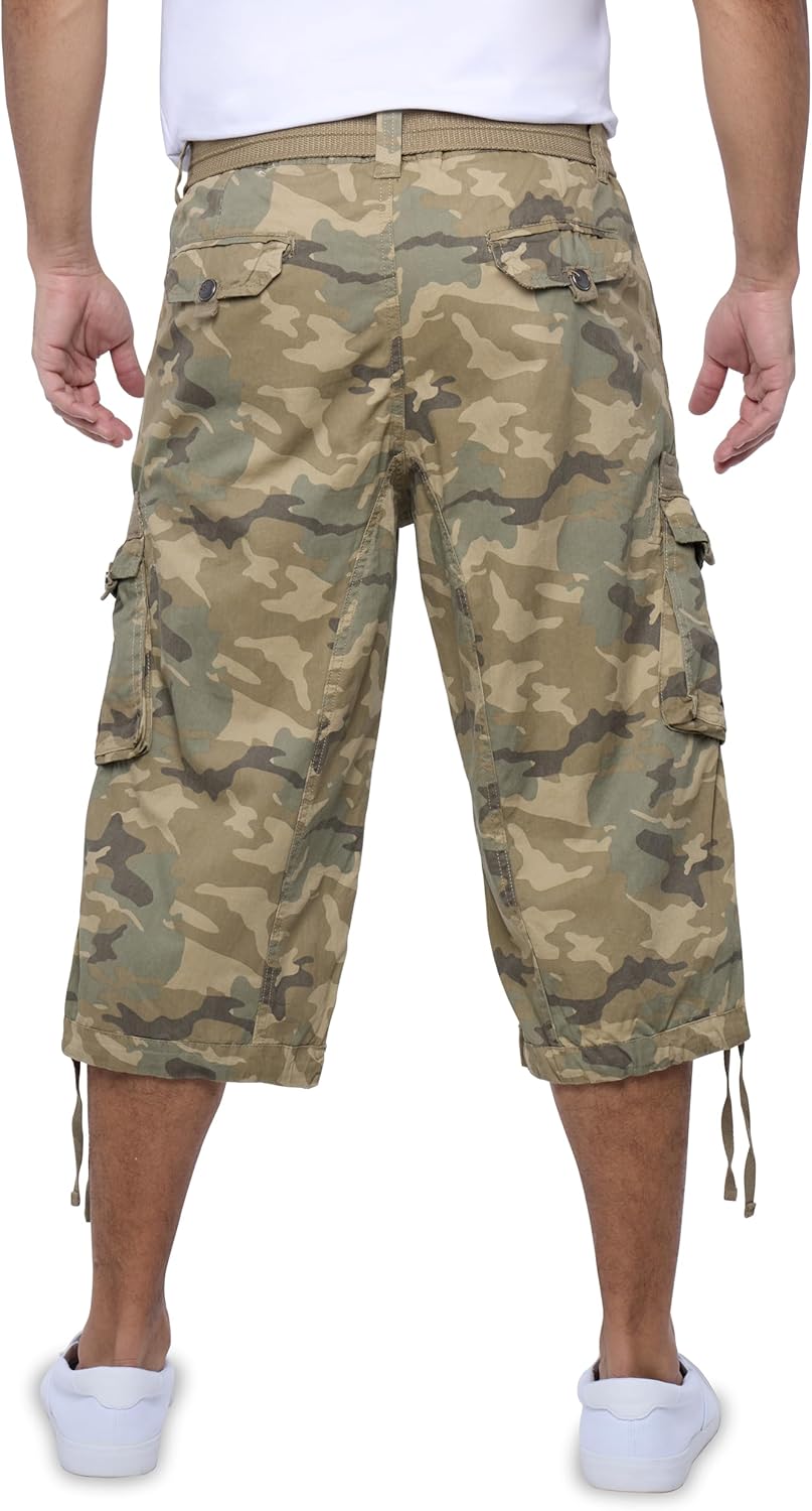 X RAY Men’s Belted Cargo Long Shorts 18″ Inseam Below Knee Length Multi Pocket 3/4 Capri Pants (Big and Tall Shorts for Men)
