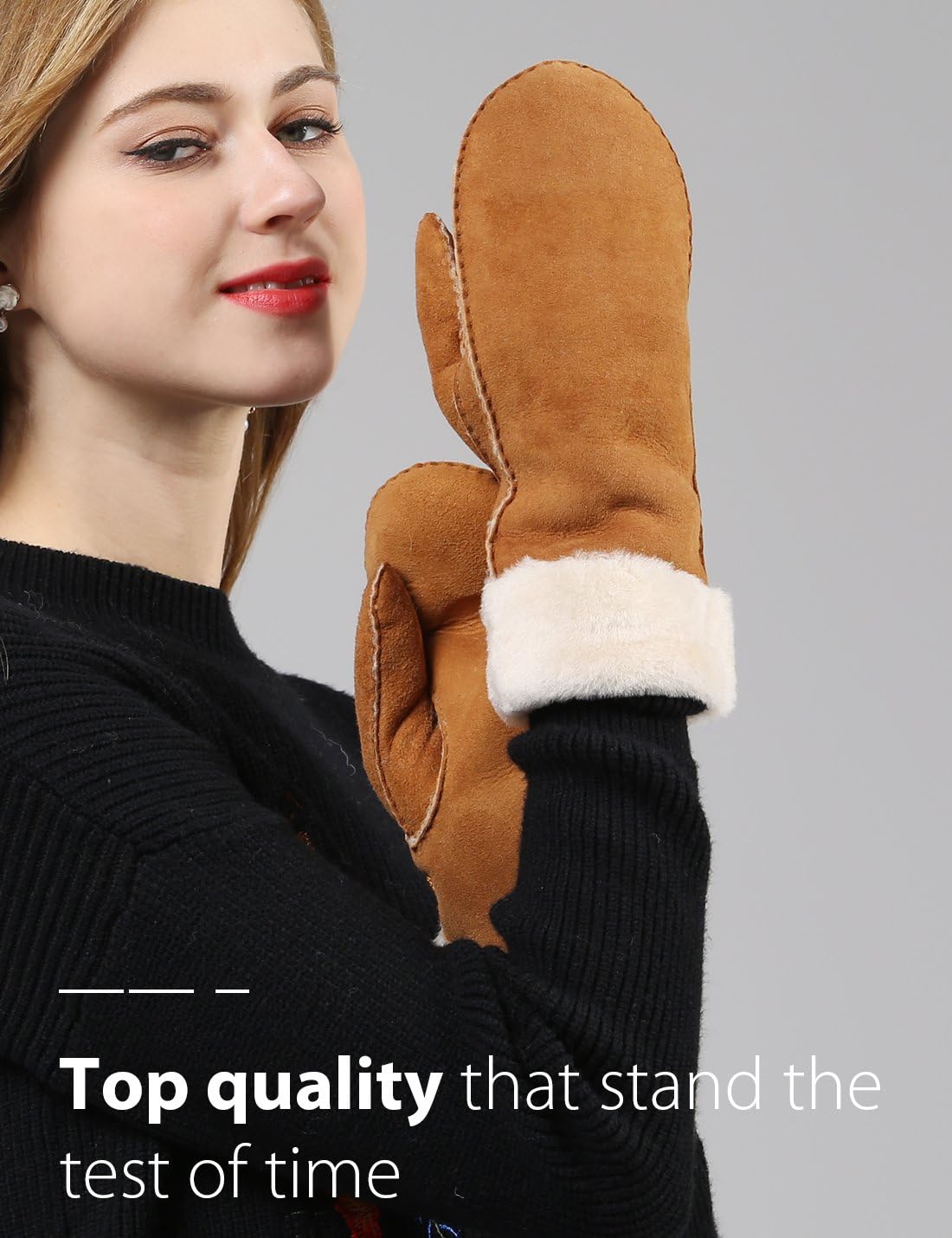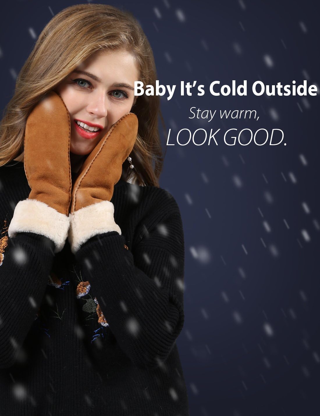 YISEVEN Women’s Merino Sheepskin Winter Shearling Leather Gloves Mitten
