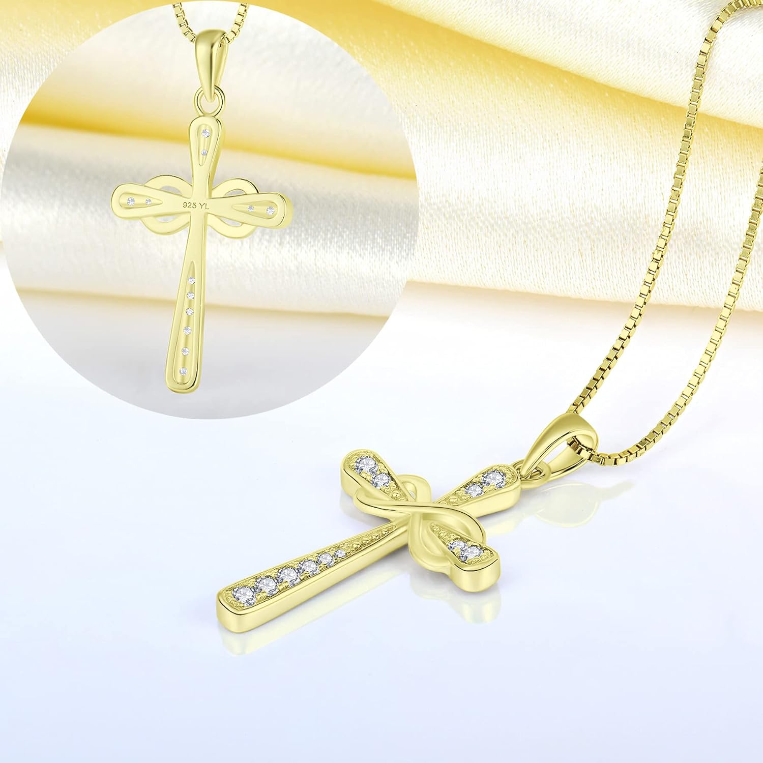 YL 925 Sterling Silver Cross Necklace for Women Halo Infinity Pendant Birthstone Jewelry for Mom