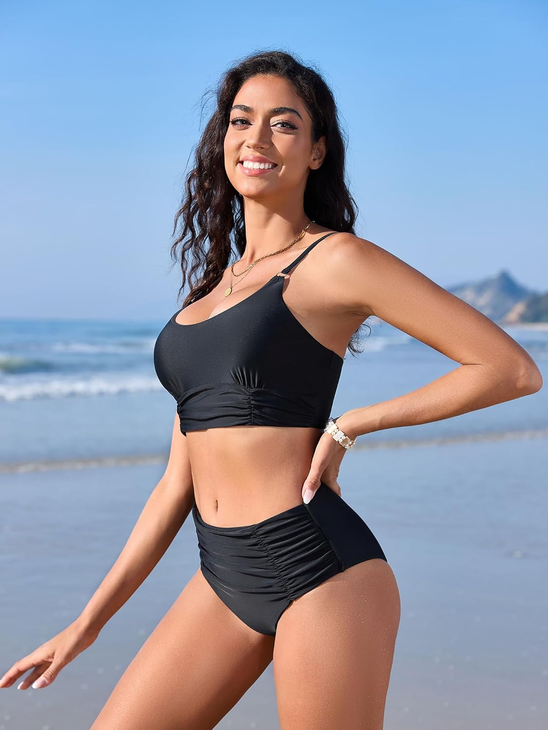 ZAFUL High Waisted Bikini Sets for Women 2 Piece Tummy Control Bathing Suits Sporty Ruched Swimsuits Full Coverage