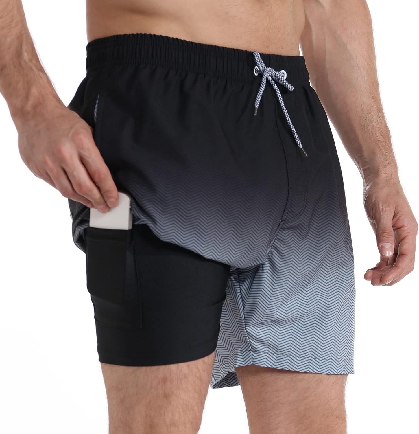 zeetoo Mens Swim Trunks with Compression Liner 5.5″ Inseam Swim Shorts Quick Dry Shorts
