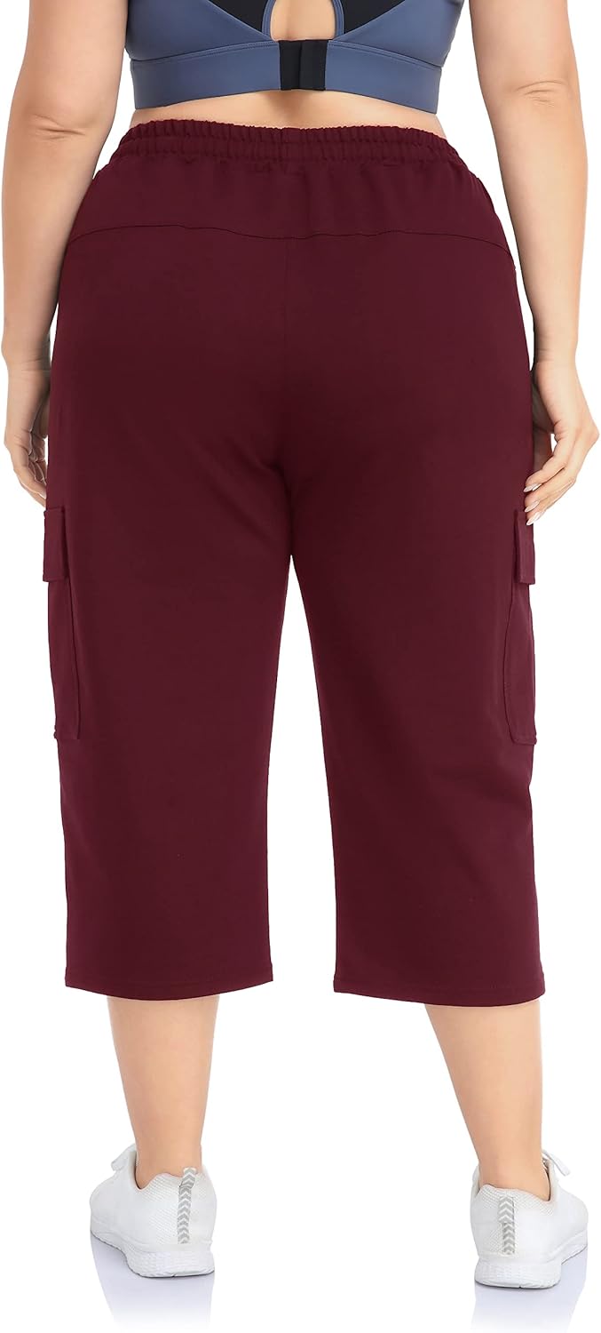 ZERDOCEAN Women’s Plus Size Cargo Capri Sweatpants Active Workout Casual Sweat Crop Pants Pockets Drawstring