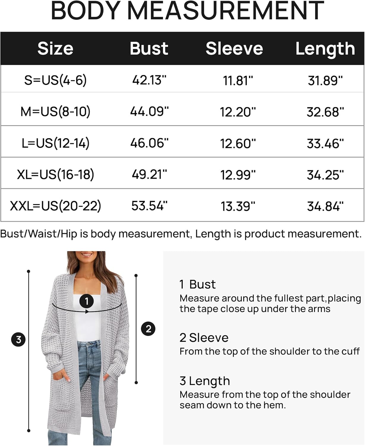 Feature — a trendy lightweight fabric, open front design, classic solid color, long bat sleeves, perfect length for pairing with leggings or skinny jeans!