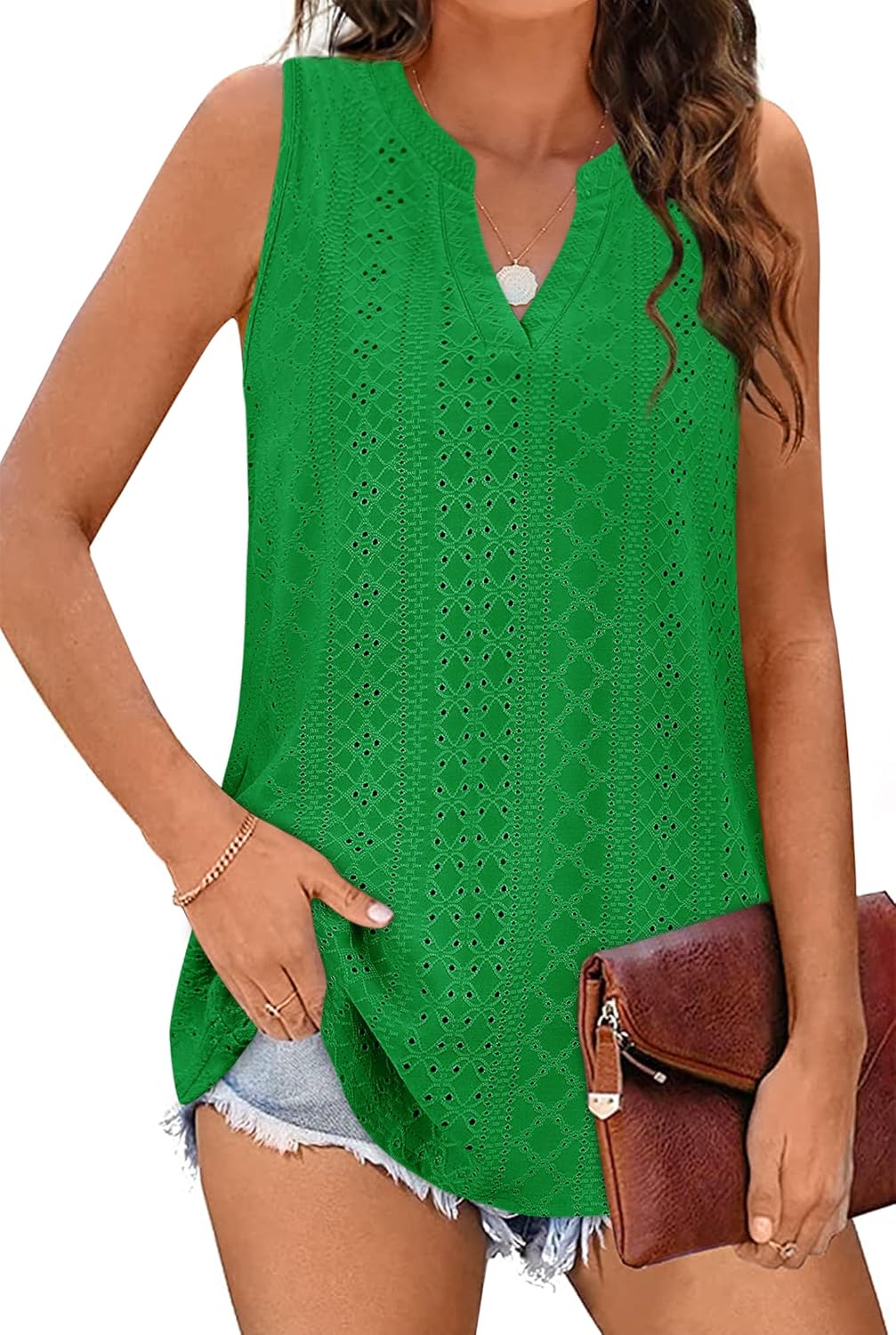 Zwurew Tank Top for Women Loose Fit Sleeveless V Neck Camisole Tops Dressy Casual Eyelet Summer Flowy Cami Shirts Blouse